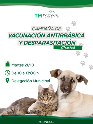 Habrá una jornada de vacunación antirrábica en Chasicó