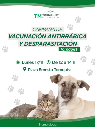 Habrá una nueva jornada de vacunación antirrábica y desparasitación en Tornquist