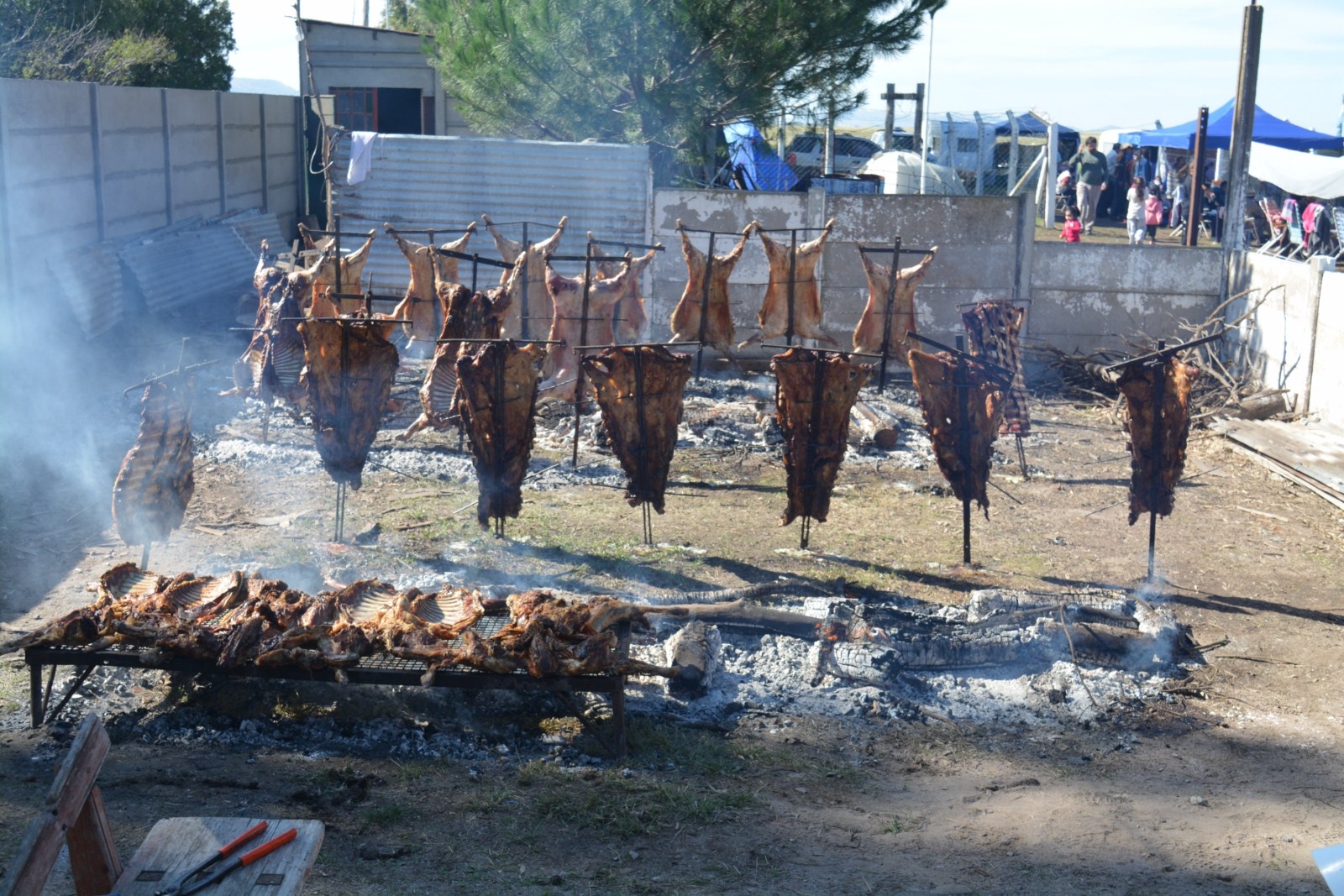 12.30 se sirvió un gran almuerzo con rueda de corderos, costillares al asador, cerdo y chorizos. Tambiñen hubo exquisitas empanadas fritas elaboradas por integrantes del grupo de trabajo.