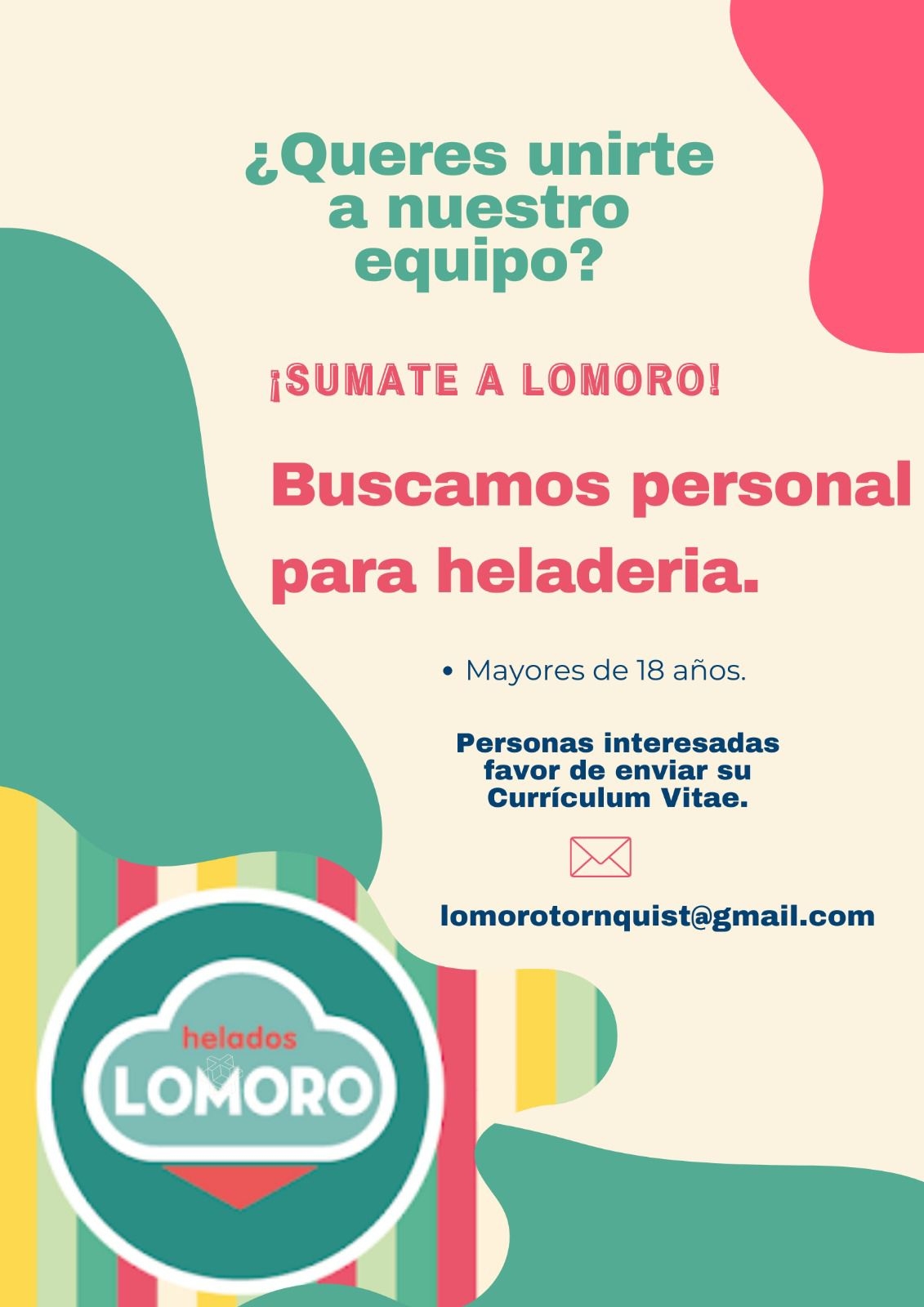 Heladería Lomoro incorporará personal 01/08/2023 21:02:33 | 1570 LECTURAS | GENERALES Para su sucursal en Tornquist.