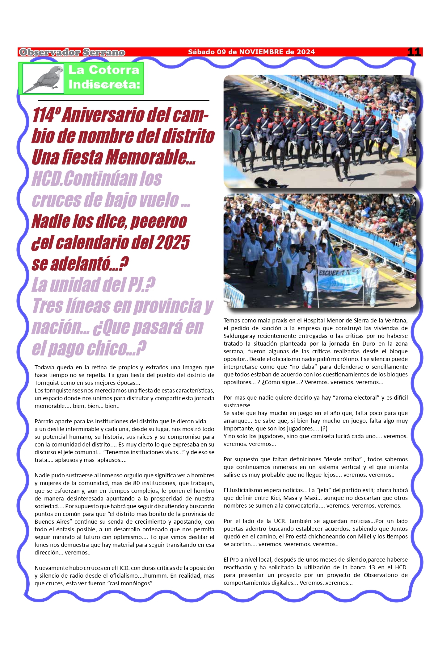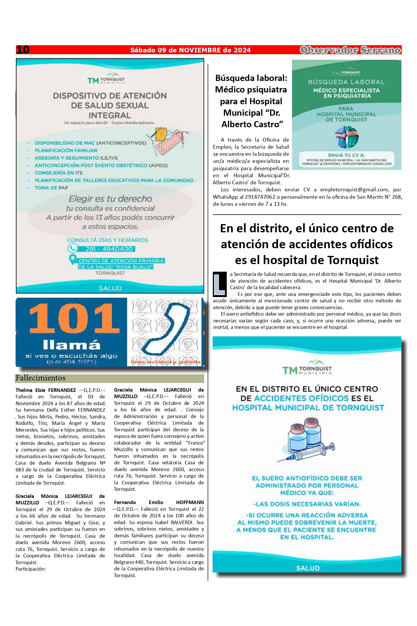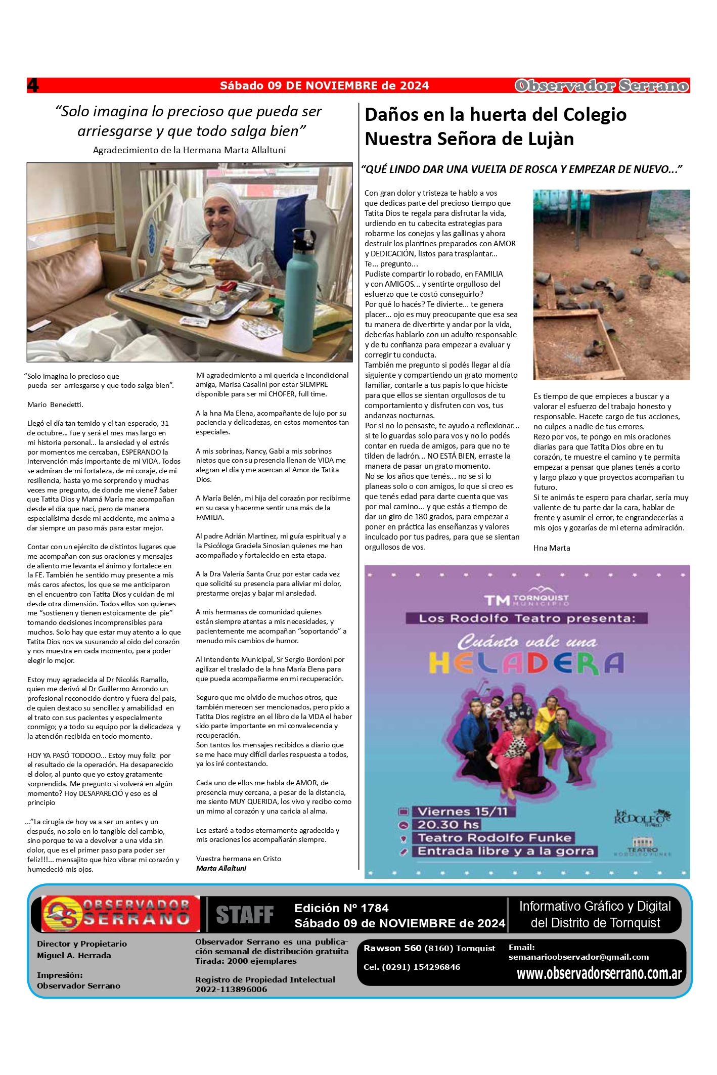 Observador Serrano 1784 09/11/2024 10:33:20 | 358 LECTURAS | GENERALES Edición de este sábado 9 de noviembre.