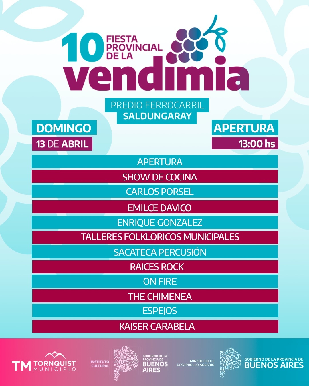 Los esperamos para compartir juntos está nueva edición de la tradicional Fiesta Provincial de la Vendimia en Saldungaray.