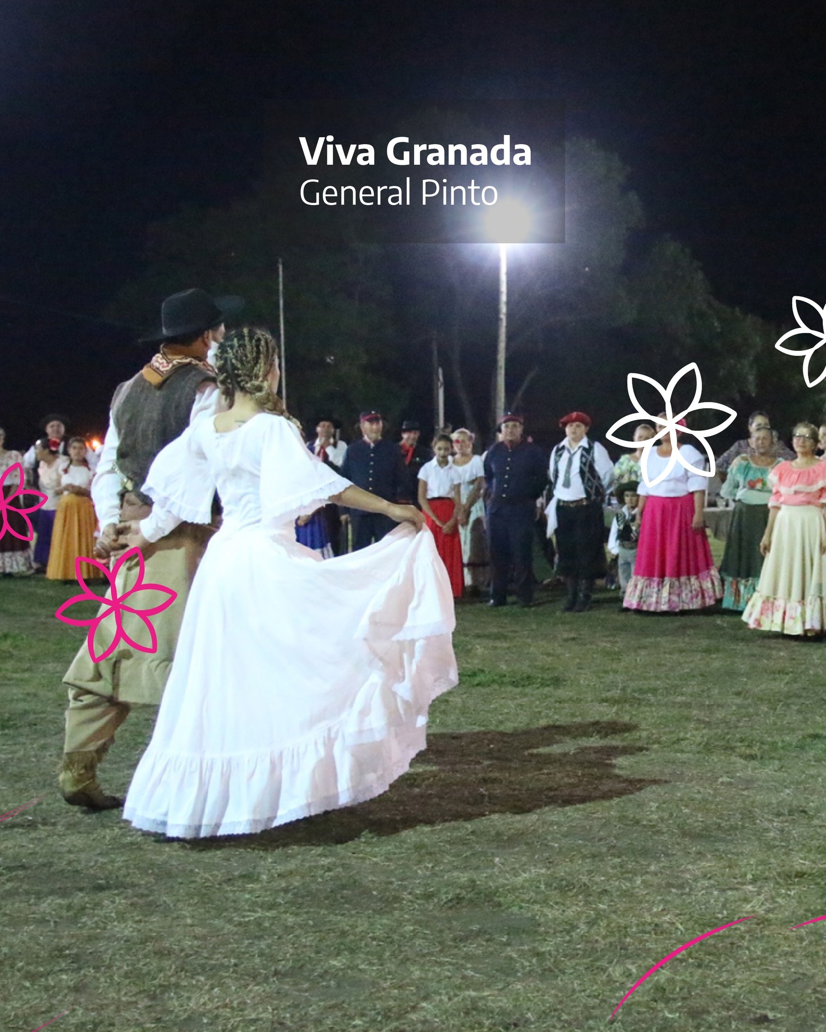 Descripción: Sábado, por la tarde apertura del escenario, taller municipal de danzas urbanas, gimnasia infantil club Villa Francia, actitud fitness, destapados, Kevin Quevedo y cierre con Dj Magui Olave. Domingo, desde el mediodía, desfile institucional, almuerzo y espectáculos con Grupo Renacer, Alma Gaucha, Amalaya, Huellas de tradición, Dejando Huellas Folklore y el cierre con Los Charros. Además, durante ambas jornadas, patio de comidas y feria de artesanos. Entrada gratuita. Organiza la Municipalidad de General Pintos.