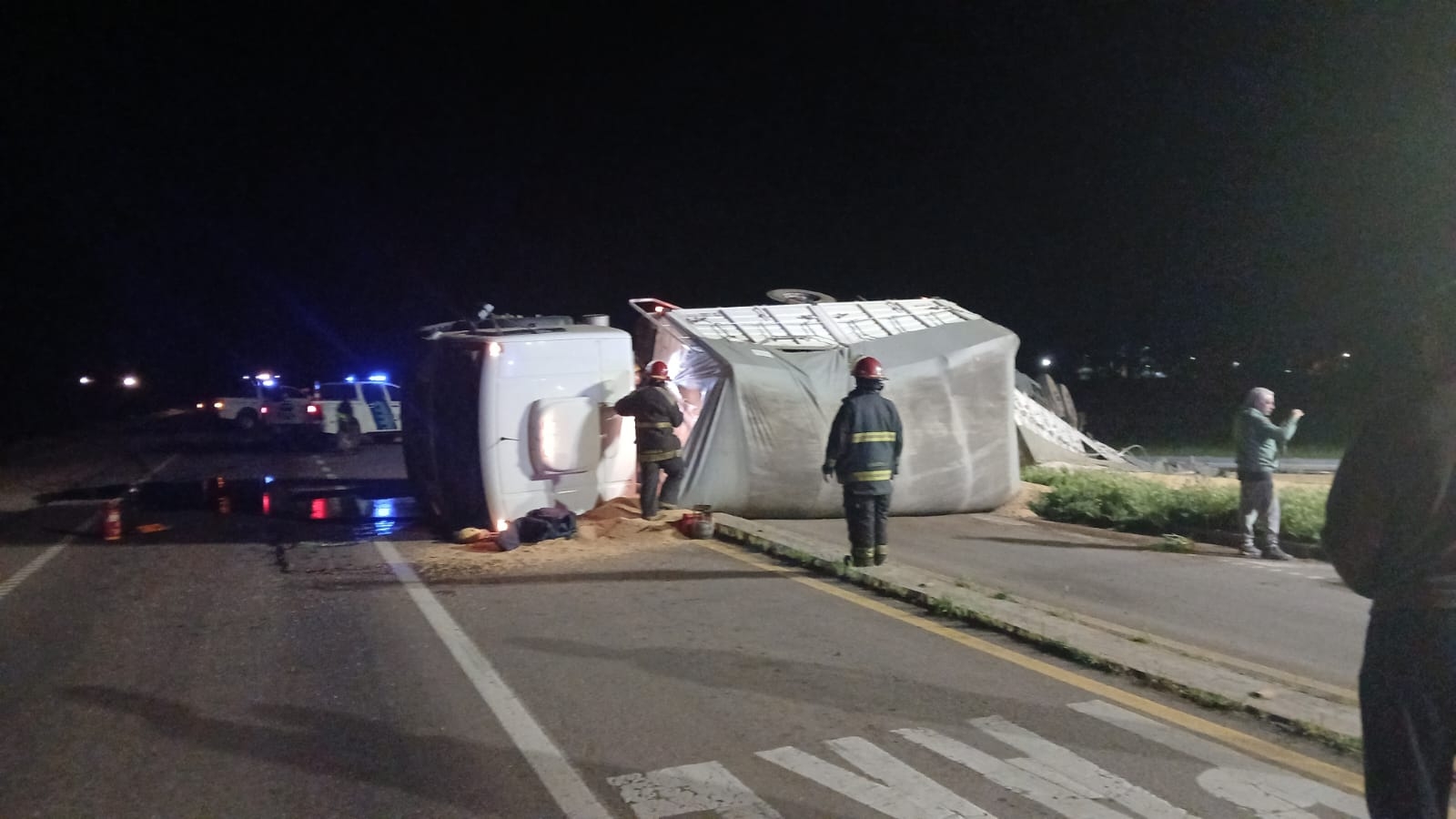Cerca de la hora 22.20 de este domingo, la policía, bomberos y personal de salud fueron convocados a la intersección de la ruta nacional 33 y 76, en cercanías de la papelera, por el vuelco de un camión que transportaba cereal.