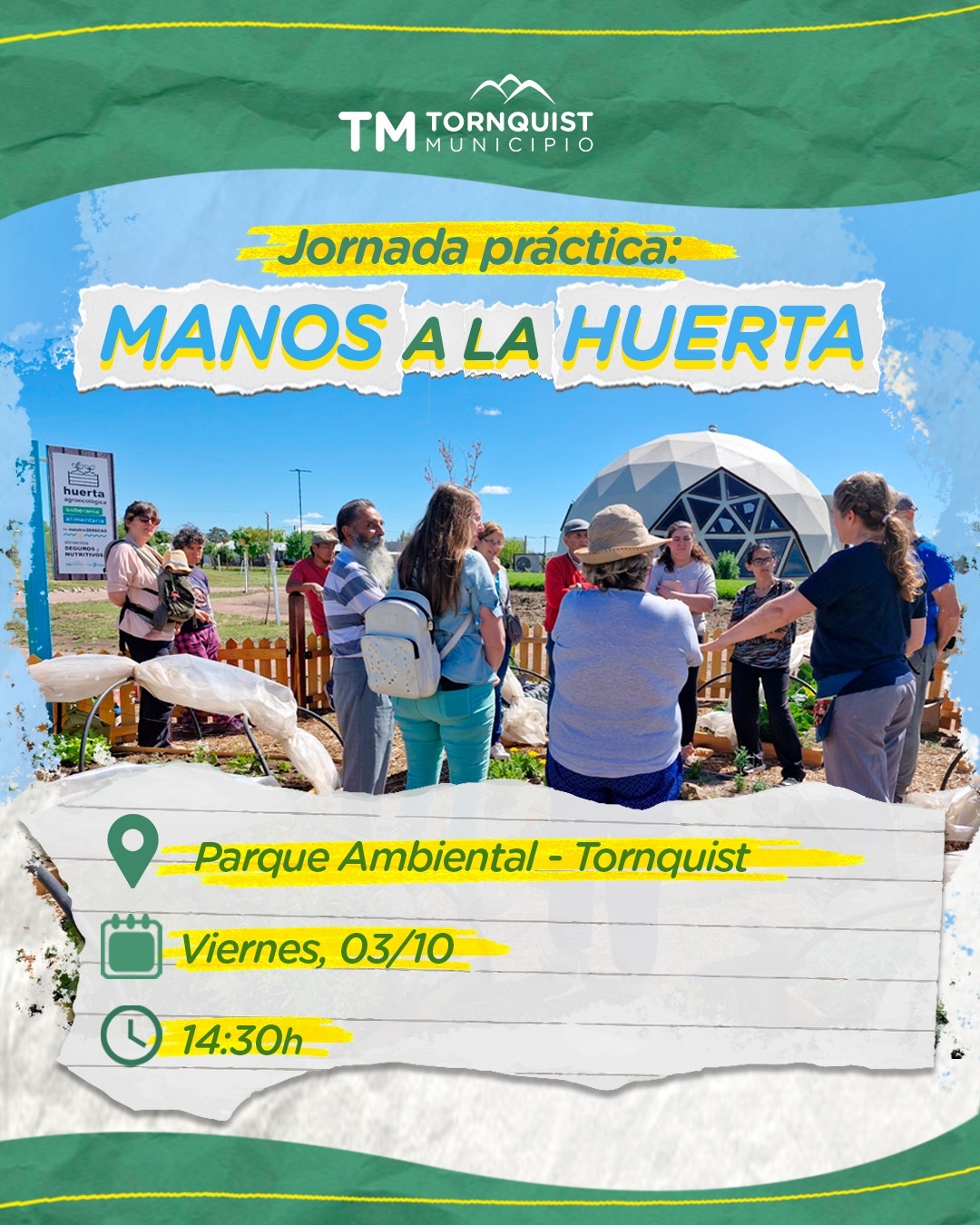 Este viernes 3 de octubre, tendrá lugar una nueva jornada sobre Huerta Agroecológica, impulsada por la Subsecretaría de Ambiente y Desarrollo Sostenible de Tornquist Municipio.