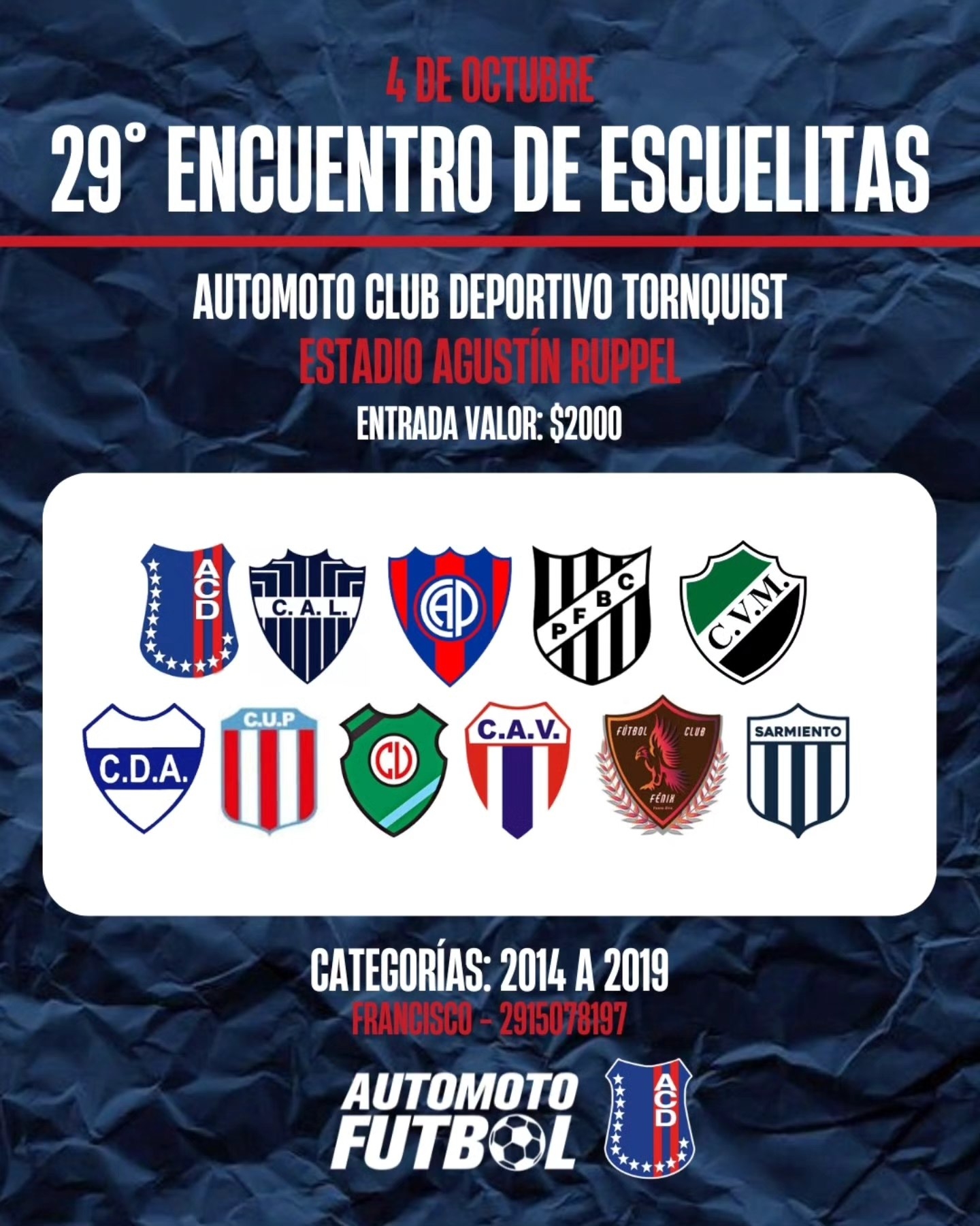 El Automoto Club Deportivo organizará este sábado su tradicional Encuentro Regional de Escuelitas de Fútbol, que este año llegará a su 29° edición.