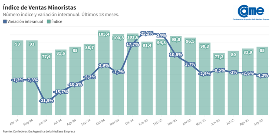 Las ventas minoristas pyme descendieron 4,2% interanual en septiembre