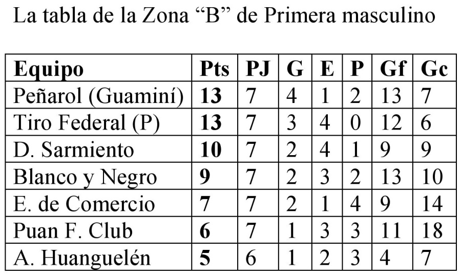 La tabla de la Zona “B” de Primera masculino