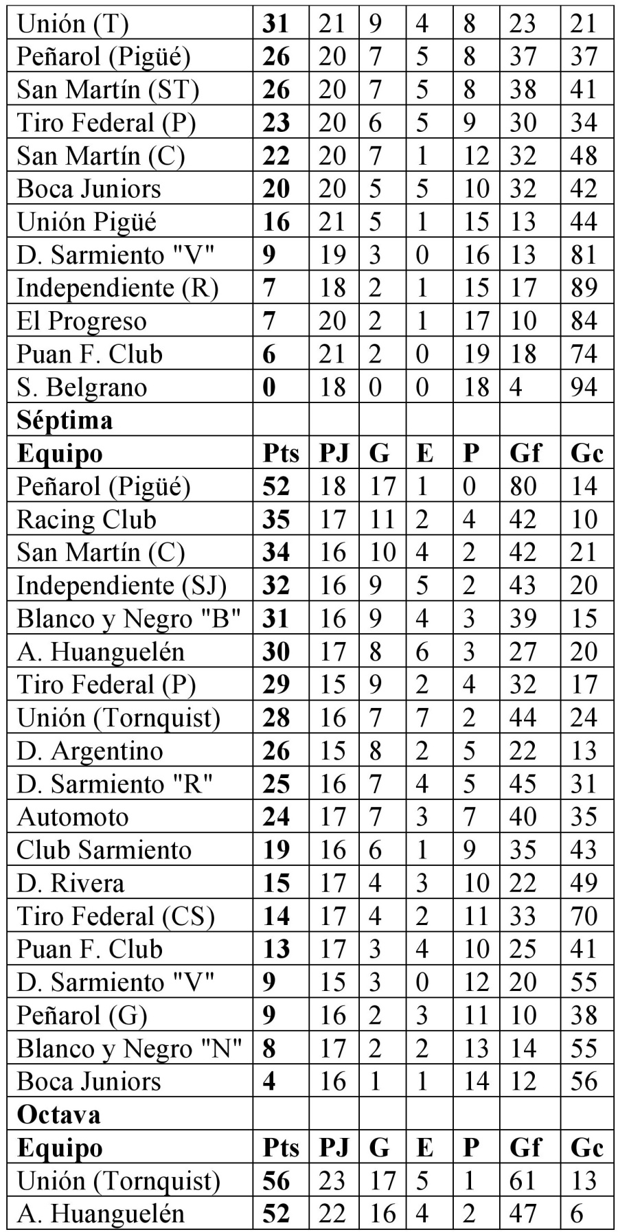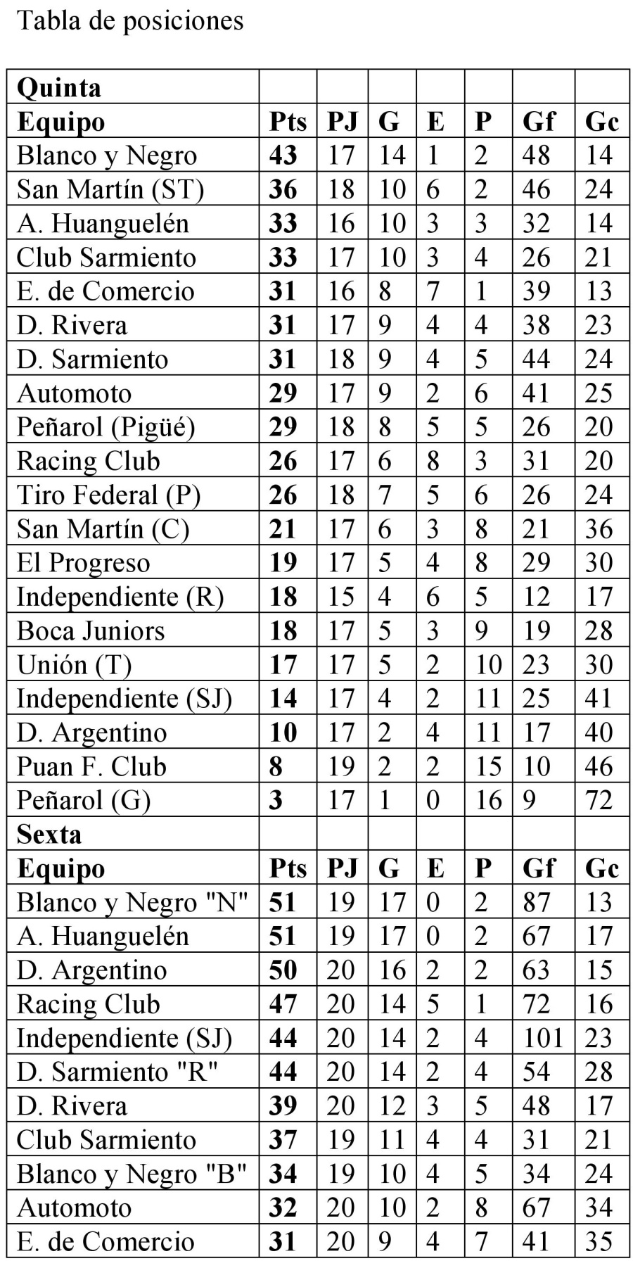También: San Martín de Carhué vs. Club Sarmiento (5ª, 6ª, 7ª y 8ª); Tiro Federal de Puan vs. Deportivo Sarmiento “Rojo” (5ª, 6ª, 7ª y 8ª); Peñarol de Pigüé vs. Sportivo Belgrano de Espartillar (6ª y 8ª); Automoto vs. Empleados de Comercio (5ª, 6ª y 8ª); Racing Club vs. El Progreso (5ª, 6ª y 8ª) y Deportivo Sarmiento “Verde” vs. Puan F. Club (6ª, 7ª y 8ª).