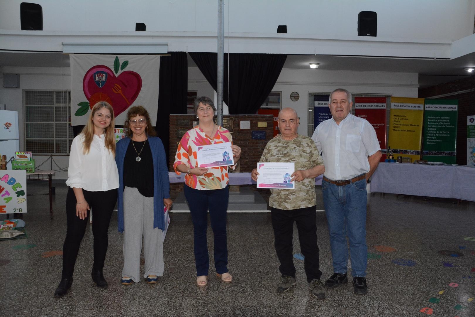 Durante el acto de apertura se realizó además un reconocimiento a Verónica Folco, Enrique Díaz y Liliana Gamito, con motivo del Día de la Cooperadora Escolar, celebrado el pasado 15 de octubre, en agradecimiento por el trabajo, la dedicación y el acompañamiento permanente a la institución. La entrega de los presentes estuvo a cargo del director de la escuela, Guillermo Di Notolo, y de la presidenta de la cooperadora, Vanina Fuentes.