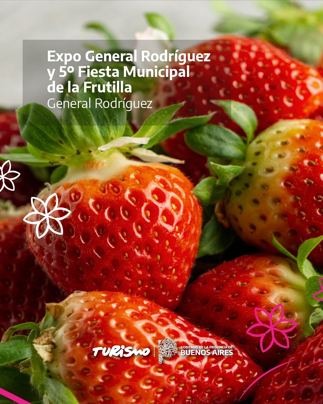 Descripción: Productores y productoras locales de frutillas, empresas de distintos rubros, charlas y talleres. Espectáculos musicales con grupos y bandas locales, solistas. con la participación de la Subsecretaría de Turismo del Ministerio de Producción, Ciencia e Innovación Tecnológica del Gobierno de la Provincia de Buenos Aires. Entrada gratuita. Organiza la Municipalidad de General Rodríguez.