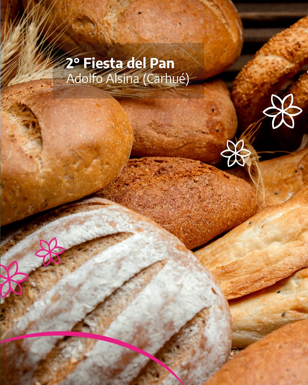 Descripción: Actividades en los espacios ciabatta, chipá, focaccia, pan de campo, grisin, baguette y miñón. Kermés del pan, ludoteca, cafetería, bar, expositores, patio de comidas, food trucks, talleres, charlas, master class, ronda de negocios, maquinarias y espectáculos musicales. Entrada arancelada. Organiza Carhué El Molino con el acompañamiento del Gobierno de la provincia de Buenos Aires, la Municipalidad de Adolfo Alsina, la Sociedad Rural de Carhué y empresas privadas.