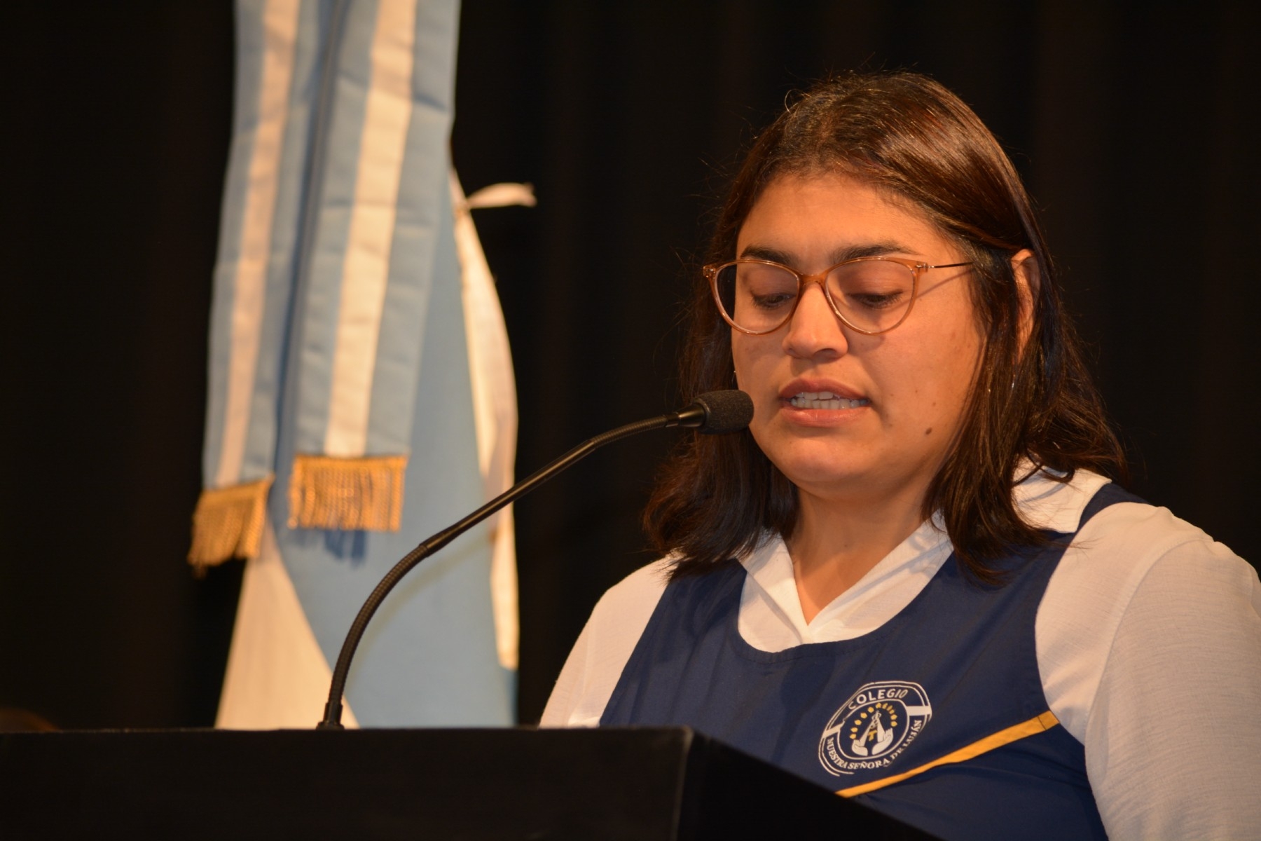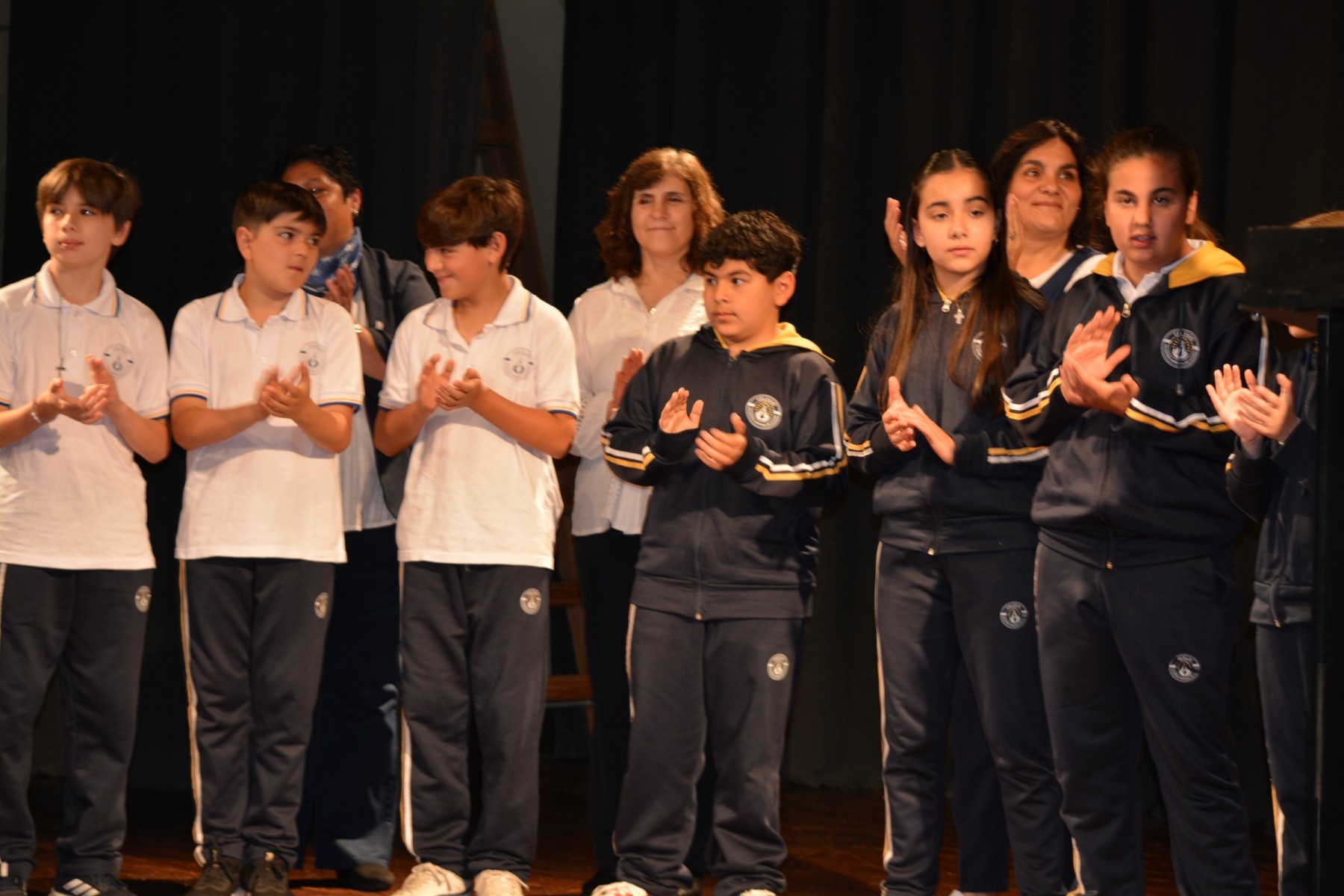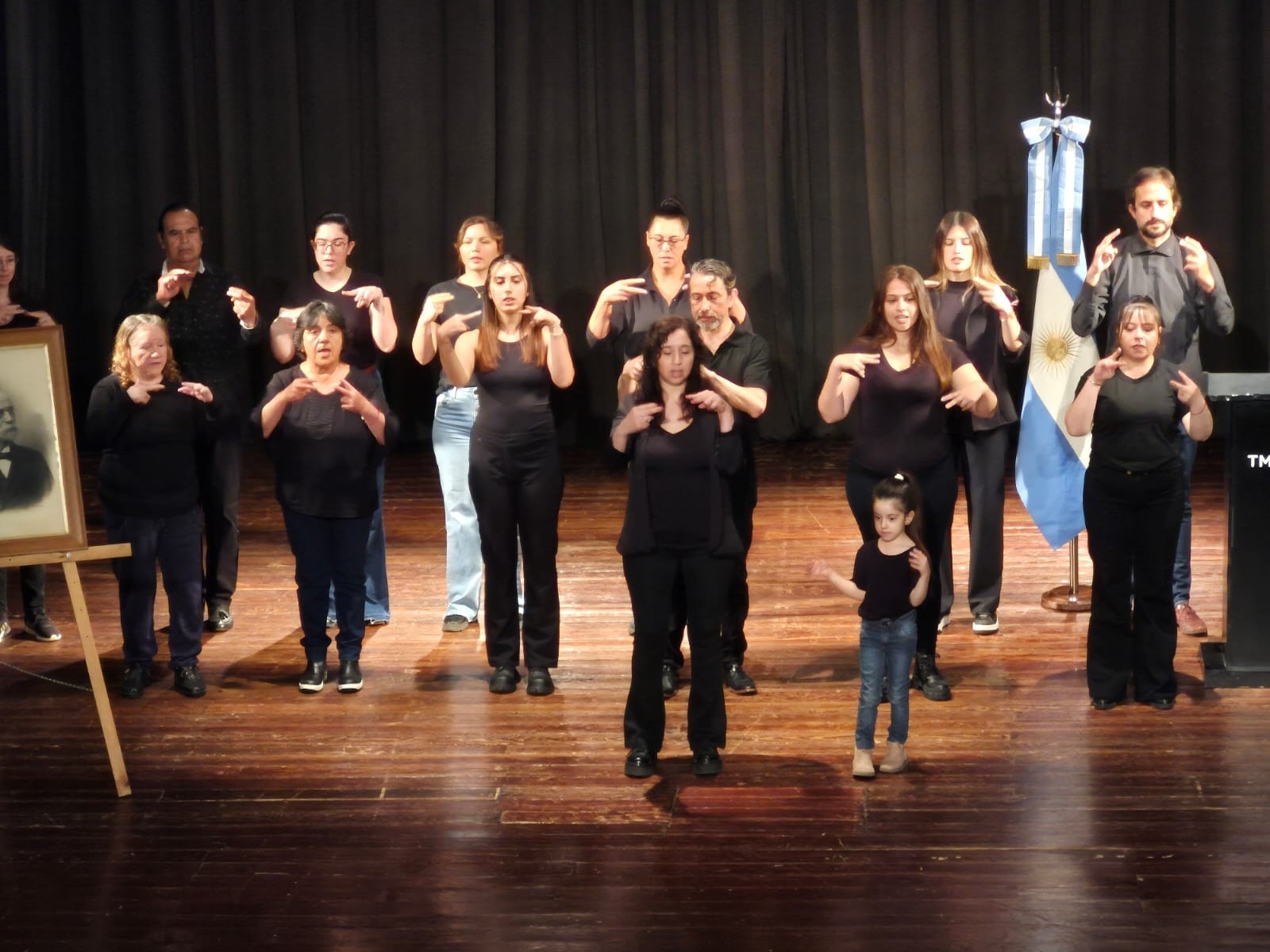 El himno nacional fue interpretado por el taller de Lengua de señas, dirigido por Carina Quiroz.