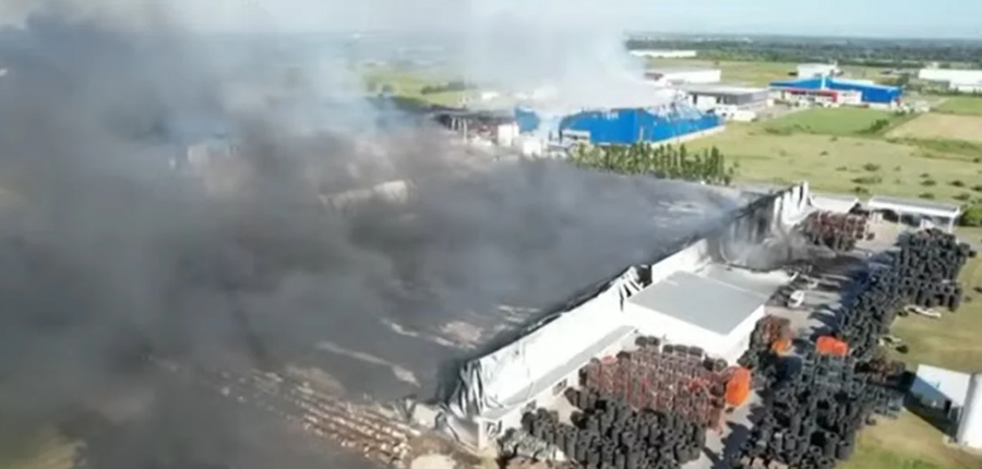 Las llamas se localizaron en un parque industrial, con galpones de diferentes empresas de acopio logístico y productos químicos. Un galpón que acopiaba neumáticos fue el responsable de la columna de humo negro más impactante.