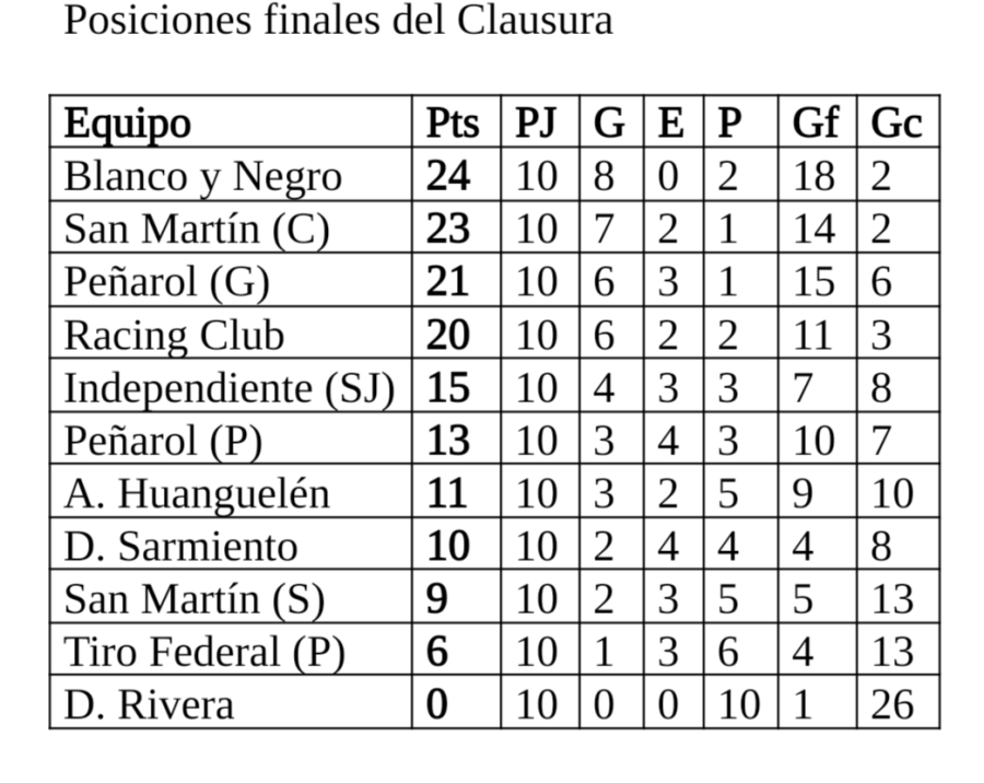 Blanco y Negro llegó a la definición en un plano de igualdad con Peñarol de Guaminí, que en el primer turno de la jornada perdió 2 a 0 con San Martín de Carhué y de esta manera allanó el camino del flamante monarca.