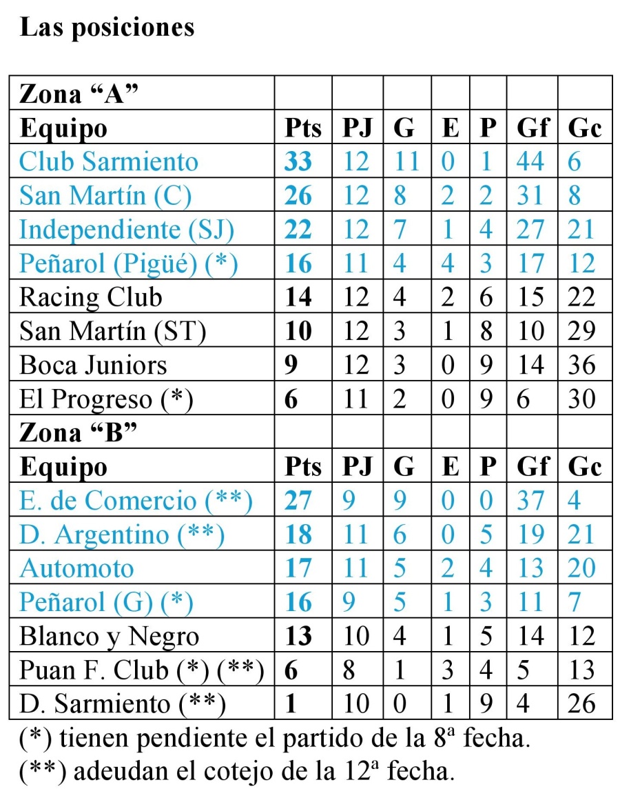Cabe recordar que en este grupo ya tienen un lugar en los cruces de cuartos de final Club Sarmiento, San Martín de Carhué (este domingo goleó por 4 a 0 a Boca Juniors de visitante) e Independiente de San José.
