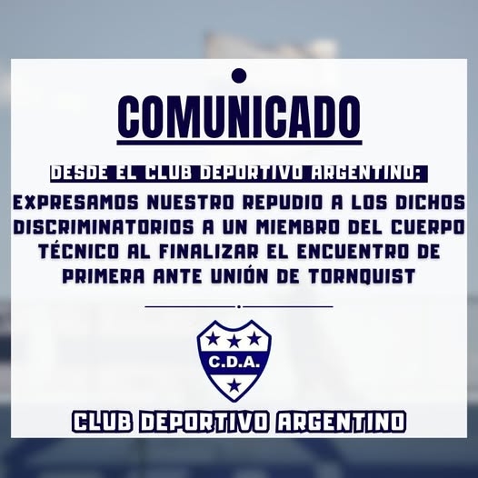 Mediante un comunicado dirigido al presidente de la Liga Regional de Fútbol de Coronel Suárez, Ernesto Manuel Palenzona, que lleva la firma de Oscar Lamarque y Josefina García, presidente y secretaria de la comisión directiva respectivamente, el Club Deportivo Argentino de Pigüé expuso su malestar por una situación vivida en la cancha de Unión de Tornquist días pasados.