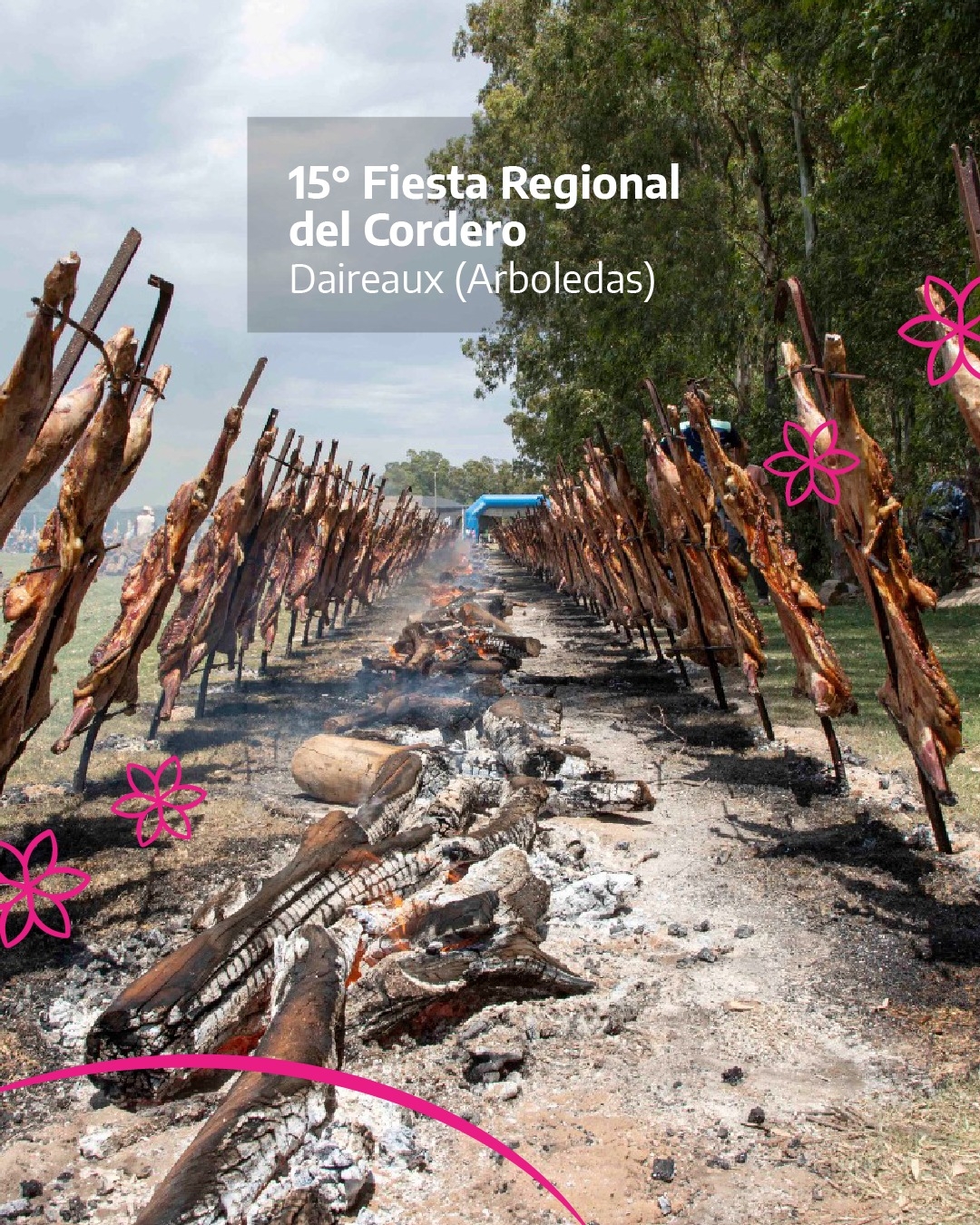 Descripción: Encuentro de sabores, música y tradiciones, con la presentación de artistas destacados como Los Juárez, Javier Toto Zapata y Daniela Show. El almuerzo incluye cordero al asador, chorizos y postre. Arboledas pertenece al programa Pueblos Turísticos de la Subsecretaría de Turismo de PBA. Entrada arancelada. Organiza la Municipalidad de Daireaux.