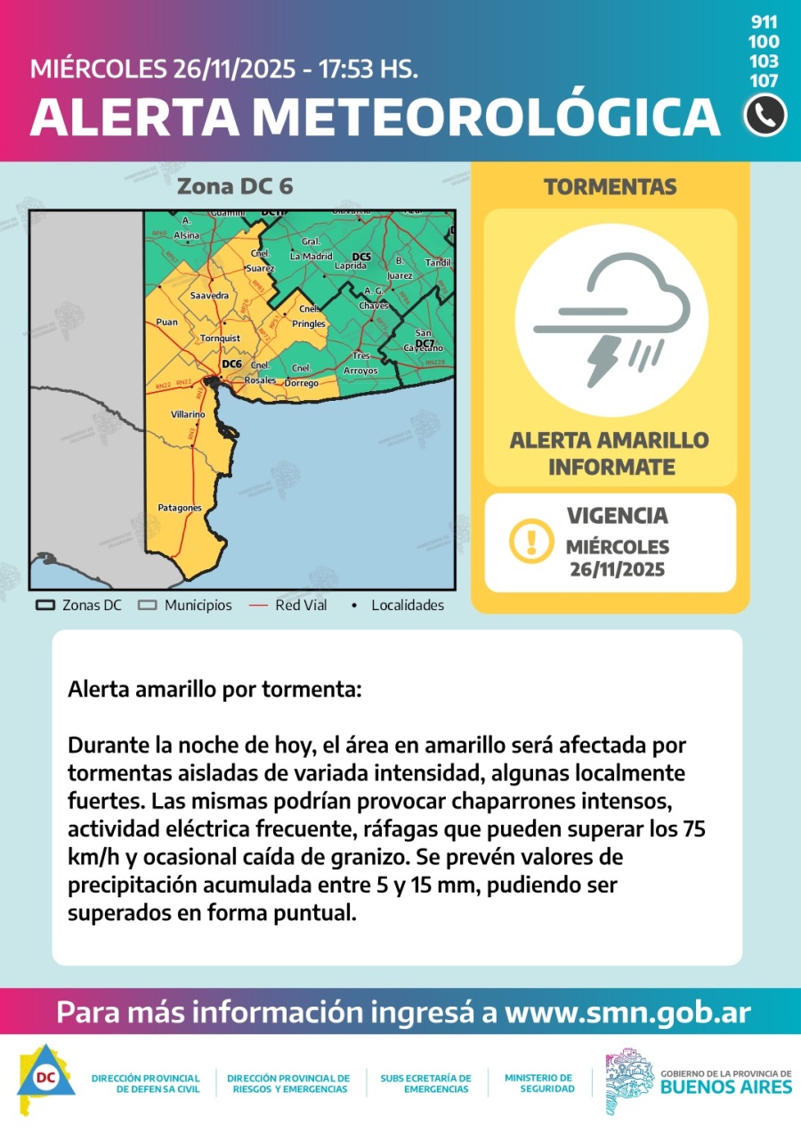 Si bien no se esperan acumulados de lluvia altos, las mismas pueden dejar chaparrones intensos de corta duración, fuertes ráfagas de viento y ocasional caída de granizo de forma localizada.