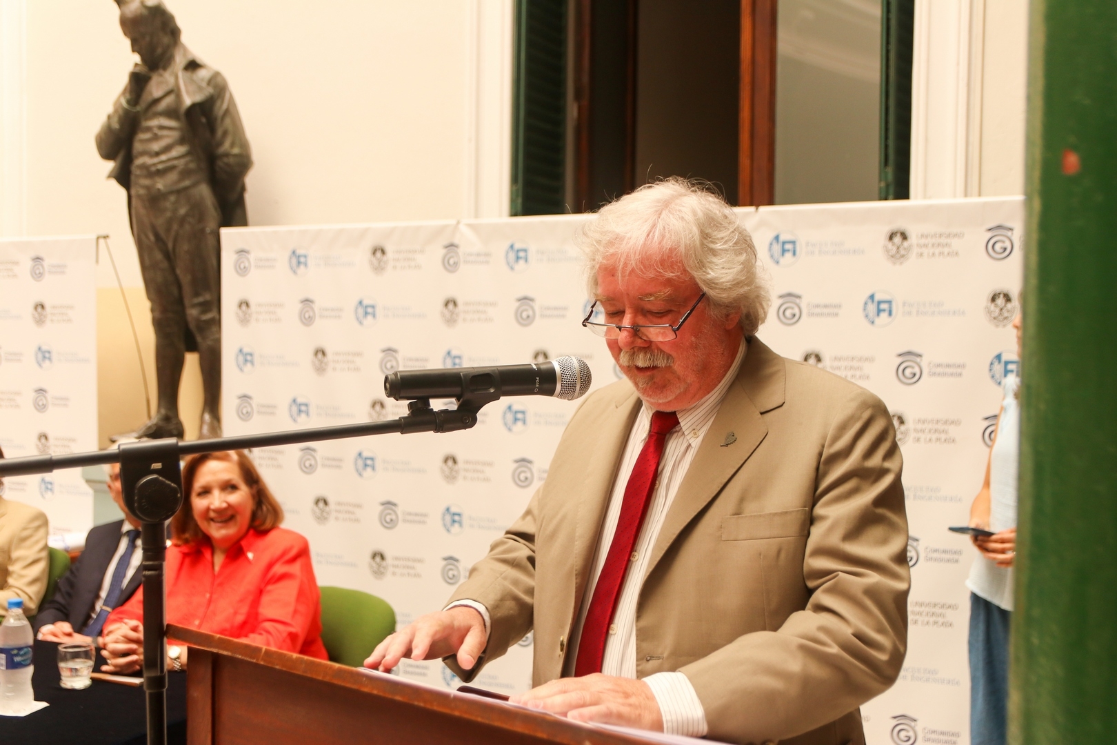 El decano mencionó la cifra de 112 graduados que recibieron su título en este último acto académico. También enfatizó el prestigio de la Universidad Nacional de La Plata y el orgullo que siente por los estudiantes que se convierten en buenos profesionales. "Ustedes son representantes nuestros. Hoy les vamos a dar un distintivo con la hoja de roble de la UNLP. Por favor, llévenlo. Yo he visitado países de Europa, Estados Unidos y China, y reconocen este emblema de la UNLP", dijo Actis.