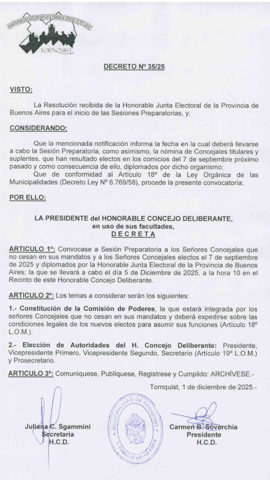 Convocan a Sesión Preparatoria del Honorable Concejo Deliberante 01/12/2025 14:39:12 | 285 LECTURAS | MUNICIPALES A realizarse el 5 de diciembre.
