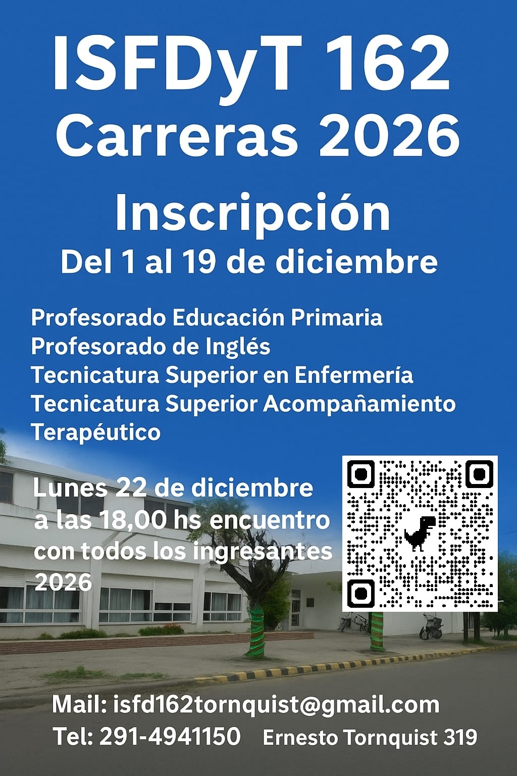 Inscripciones 2026 del Instituto Superior de Formación Docente y Técnica 162