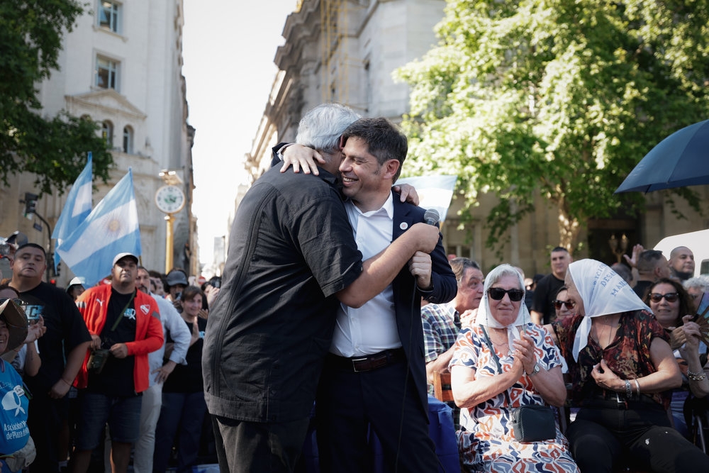 El gobernador de la provincia de Buenos Aires, Axel Kicillof, participó este jueves de la ronda N° 2.486 de las Madres de Plaza de Mayo, en el marco de las actividades que se desarrollan en homenaje a Hebe de Bonafini por la conmemoración de su cumpleaños Nº 97. Fue junto a la titular de la asociación, Carmen Arias, y sus referentes Sara Mrad, Josefa de Fiore e Irene Molinari.