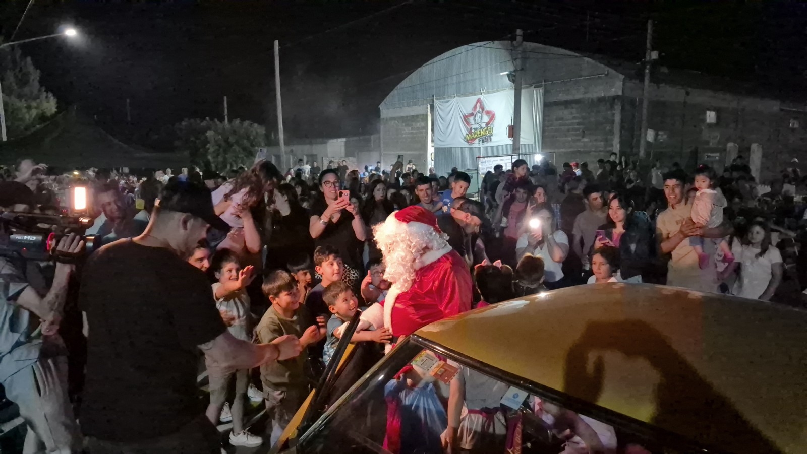 Cerca de la hora 21.30 comenzaron los aplausos, un auto amarillo conducido por Diego Palombo traìa en su interior a Papa Noel que fue recibido con humo verde y rojo y acompañado por los duendes de la fiesta.