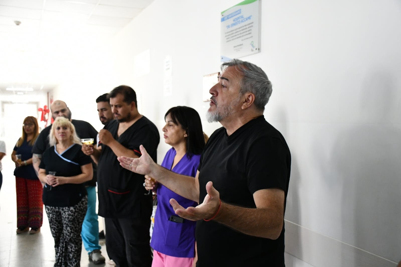 “Tenemos que estar en los sectores laborales junto a los trabajadores, tener cercanía. En estos días estar al lado de quienes cumplen funciones durante las fiestas y deben pasarlas lejos de sus hogares y sus familias. Enfrentamos momentos de asedio, de ataque a nuestros derechos fundamentales. Tenemos que seguir apostando a las construcciones colectivas”, señaló el dirigente desde el Hospital Ernesto Accame de la localidad de Allen.