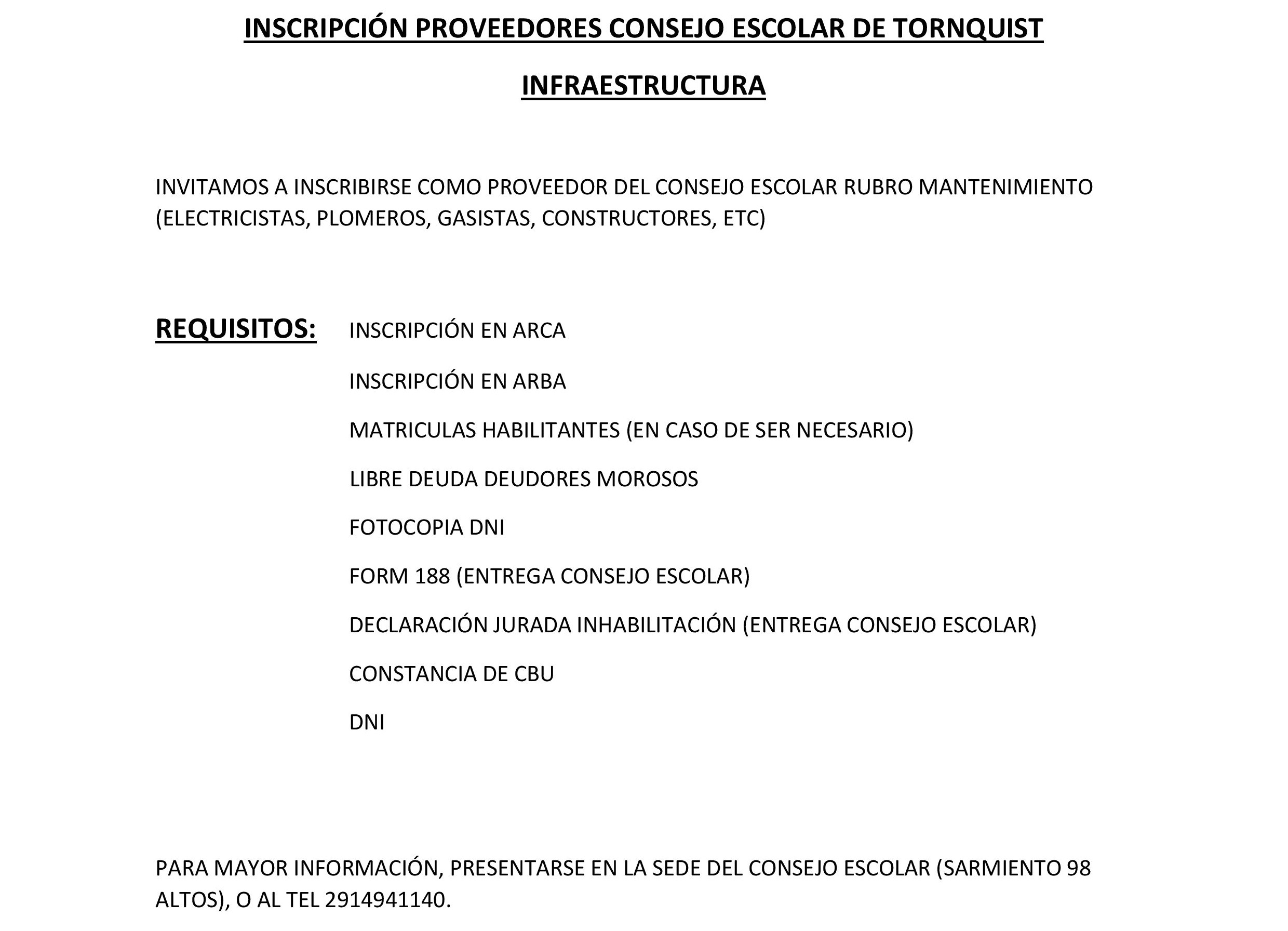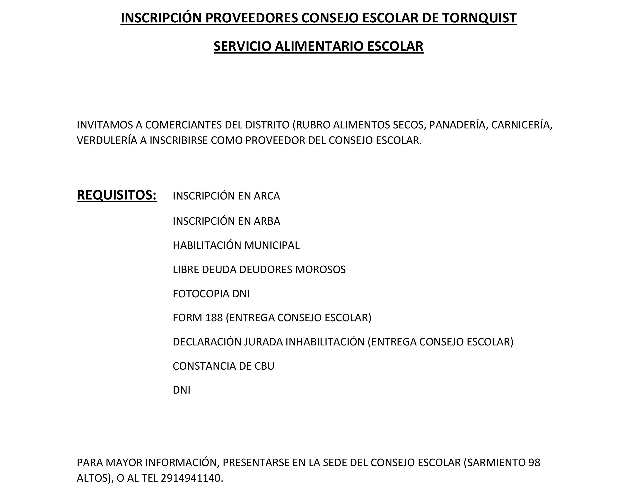 El Consejo Escolar de Tornquist abrió la inscripción de proveedores