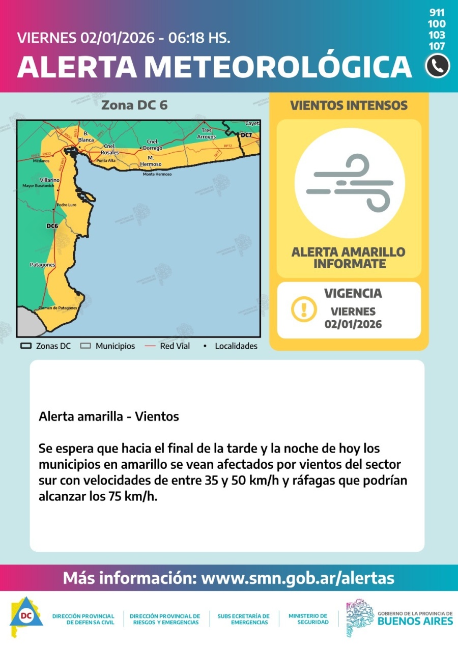 Descripción alerta amarilla por vientos - VIERNES 02/01
