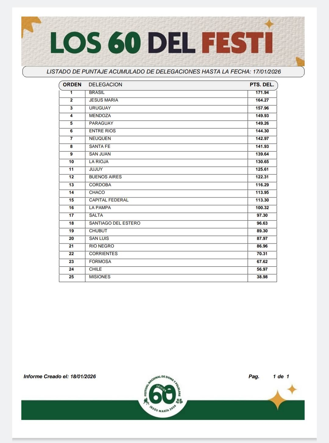 En el acumulado por Delegaciones, fue Brasil el que sumó más puntos entre las tres categorías y en el Top 5 también están Uruguay y Paraguay.
