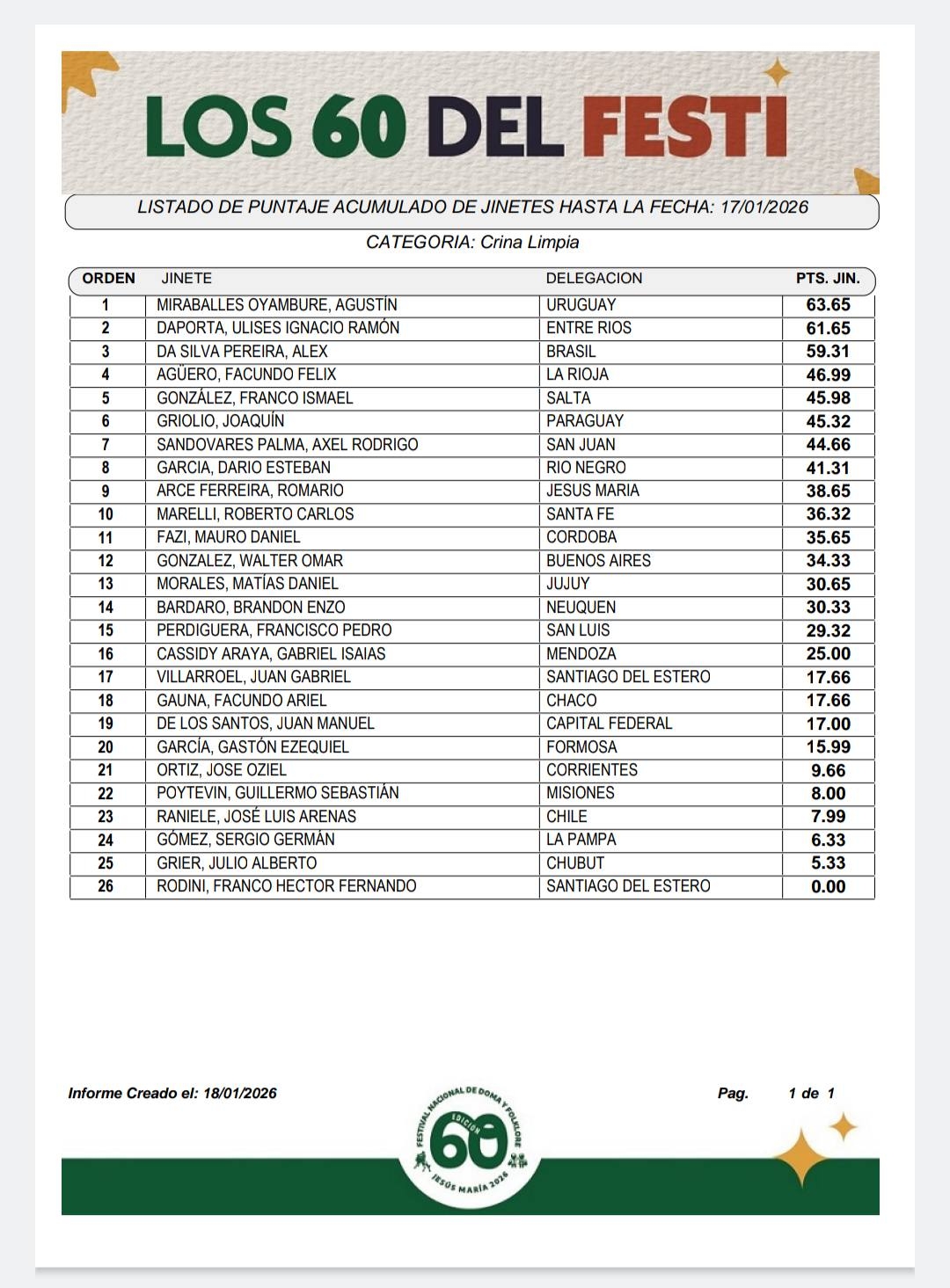 En Crina Limpia, el título se fue para Uruguay: Agustín Miraballes Oyambure, en su primer Festival, logró ser el mejor en una categoría que últimamente era para los brasileros.