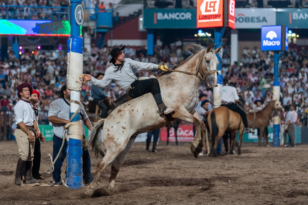 Ramón Córdoba, representante de Paraguay, en la jineteada más espectacular de la noche, ante unas 25 mil personas que gritaron como un gol de la Selección, alcanzó el segundo puesto.