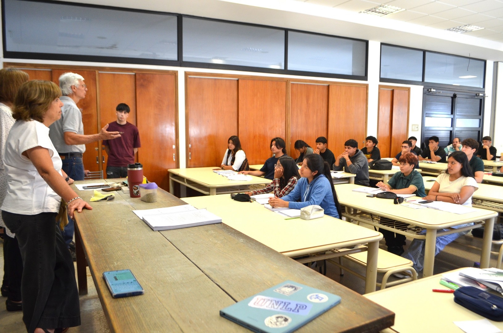 El decano de la Facultad de Ingeniería Marcos Actis, la vicedecana Patricia Arnera, el secretario académico Andrés Martínez del Pezzo y la profesora titular de Mate Pi, Rossana Di Domenicantonio, recorrieron las aulas para dar la bienvenida a los ingresantes. La unidad académica cuenta con trece carreras.