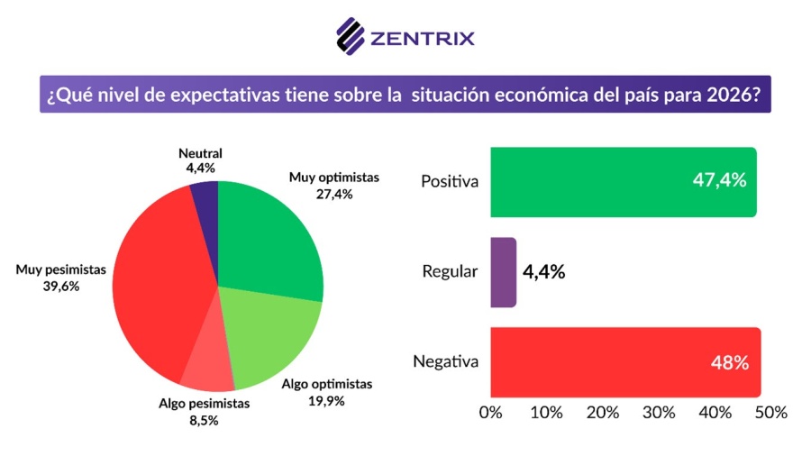 Consultados sobre las expectativas para 2026, el 48% cree que la situación económica del país será negativa, mientras que el 47,4% proyecta un escenario positivo, una diferencia mínima que deja un mapa prácticamente partido en mitades.