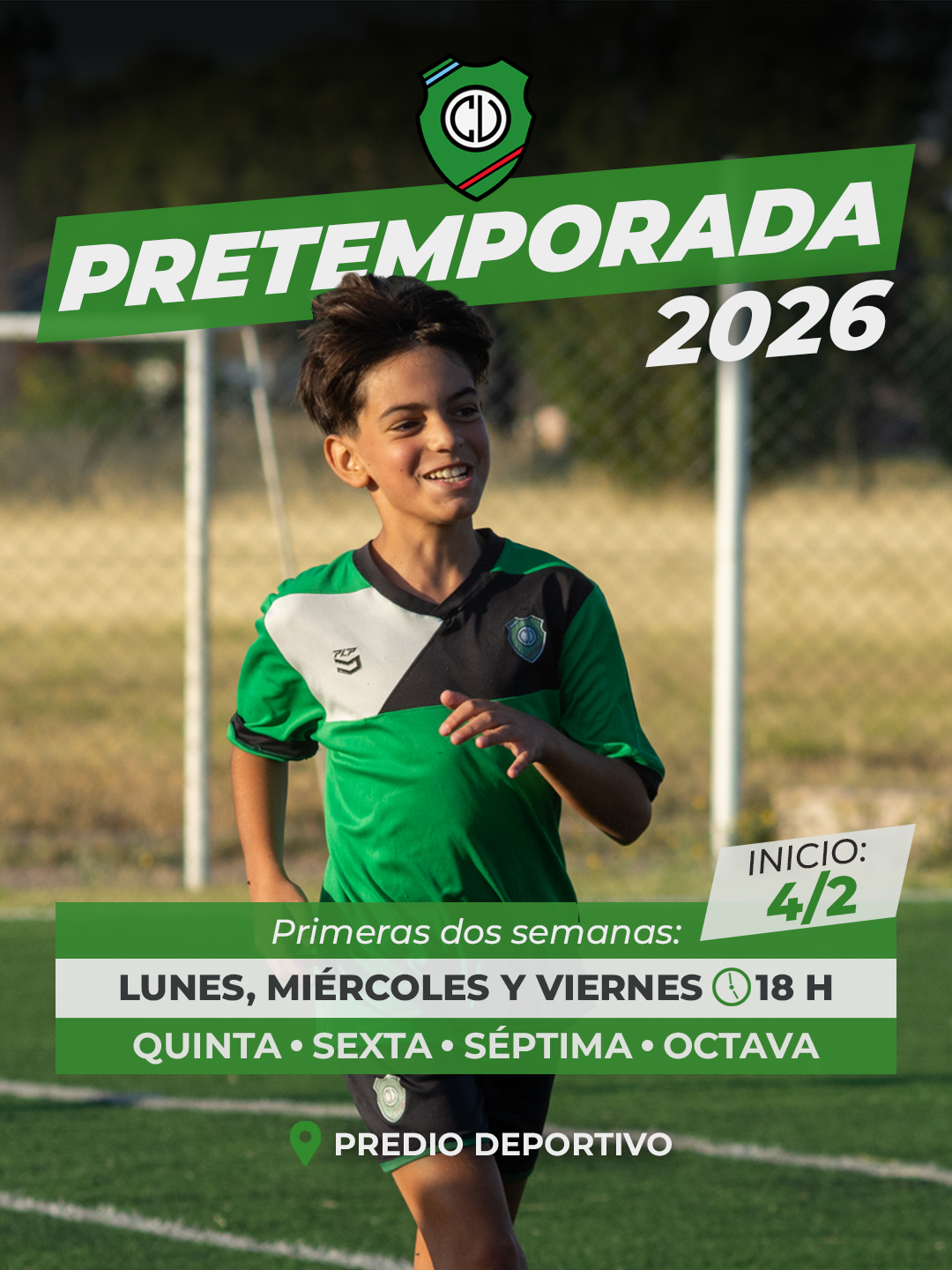 Durante las primeras dos semanas de trabajo, los entrenamientos se desarrollarán los lunes, miércoles y viernes a las 18 hs en el predio deportivo para las cuatro categorías: Quinta (2009 – 2010), Sexta (2011 – 2012), Séptima (2012 – 2013) y Octava (2014).