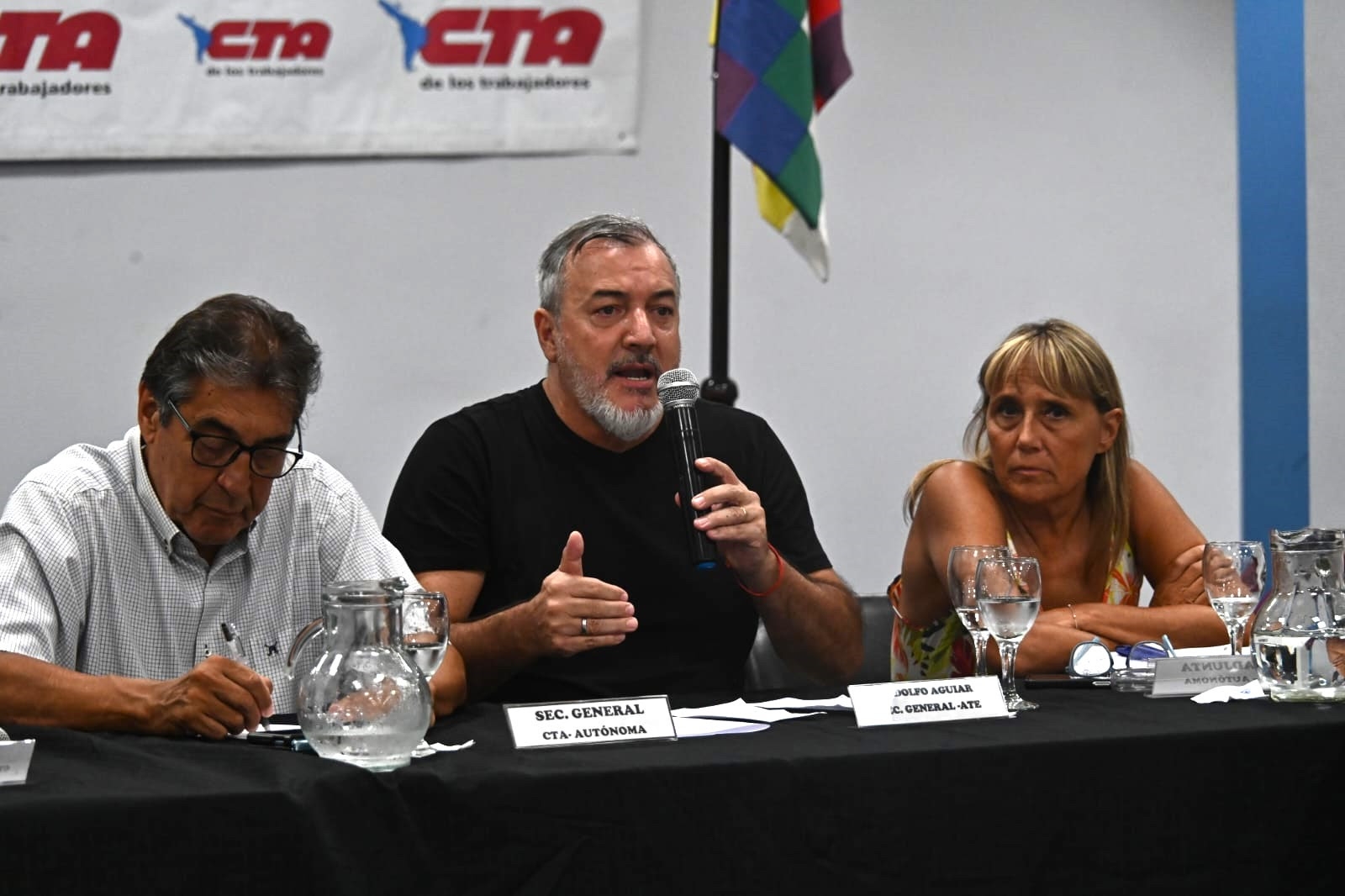 Luego de la realización del plenario conjunto de la CTA Autónoma y la CTA de los Trabajadores en el que se ratificó el paro nacional con movilización al Congreso el día que se trate la reforma laboral en el Senado, el Secretario General de ATE Nacional, Rodolfo Aguiar, señaló en conferencia de prensa: “La herramienta más idónea para enfrentar la reforma patronal del Gobierno es la huelga”.