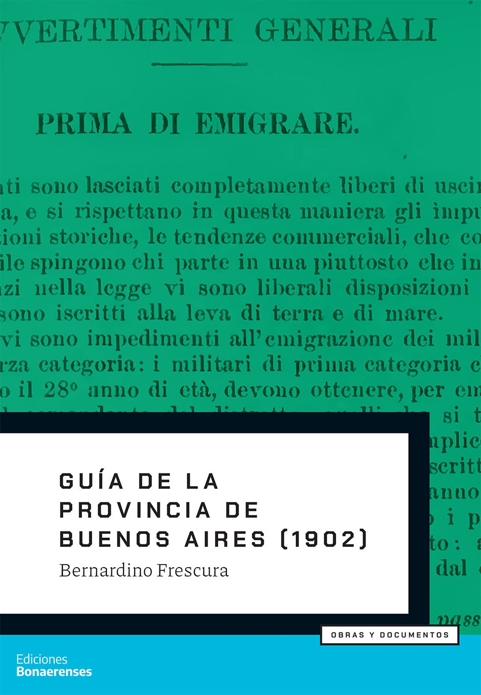 Por último, dentro de la colección Obras y Documentos se publica Guía de la Provincia de Buenos Aires, un libro escrito por el profesor y geógrafo Bernardino Frescura y publicado en Roma en 1902 con el objetivo de orientar a los ciudadanos italianos que proyectaban radicarse en la Argentina. En ella se detallan desde el valor de los pasajes de tren hasta las equivalencias de peso, medida y distancia o el tipo de actividad agrícola o ganadera desarrollada en cada región y del profuso tendido ferroviario existente en la época. Con traducción y prólogo de la profesora e historiadora Ana Miravalles, directora del Museo y Archivo Histórico de Bahía Blanca, hoy la guía permite repensar la inmigración, revisitar la historia de los partidos bonaerenses y, por qué no, agregar detalles inesperados a muchas historias familiares.