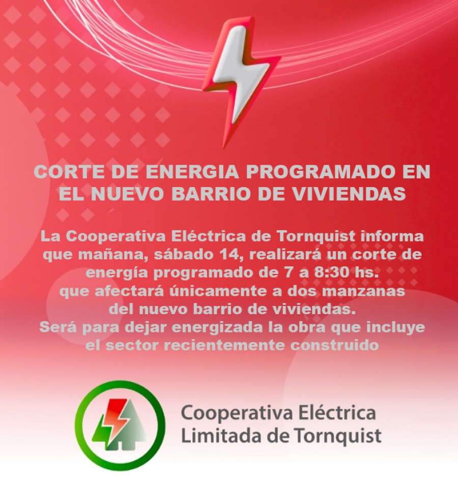 Corte de energía programado en el nuevo barrio de viviendas AYER 23:04:17 | 384 LECTURAS | GENERALES Informa CELT.