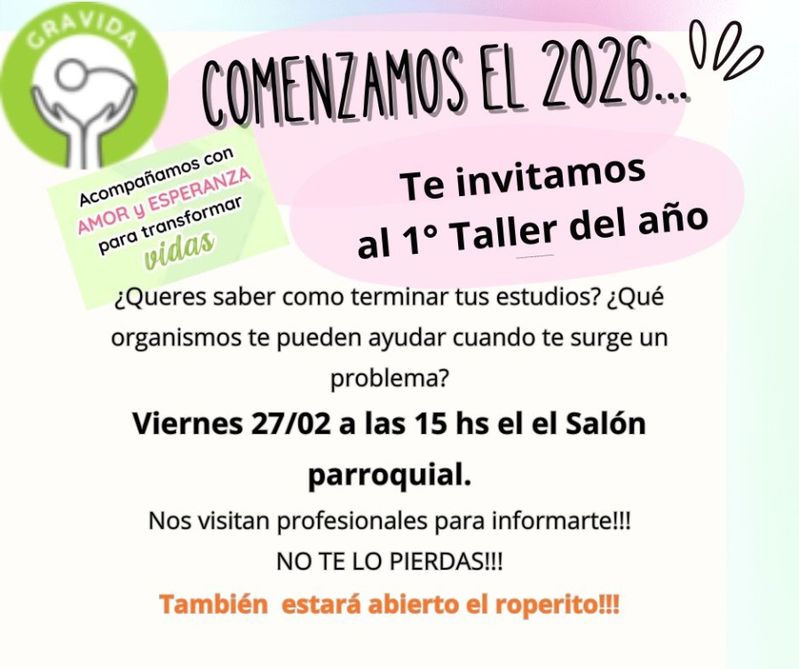 GRÁVIDA inicia sus talleres 2026 HOY 17:13:32 | 216 LECTURAS | GENERALES Invitan a las mamás de la comunidad a sumarse al primer encuentro del año en el salón parroquial.