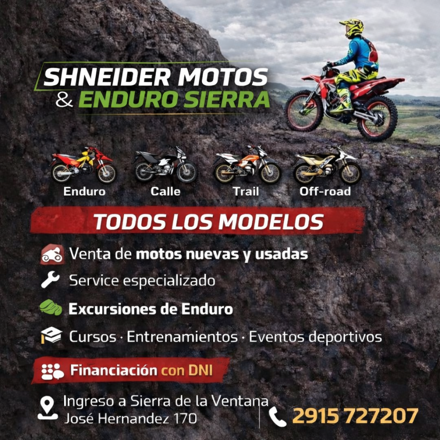 Desde Sierra de la Ventana las mejores motos son de SCHNEIDER MOTOS Y ENDURO