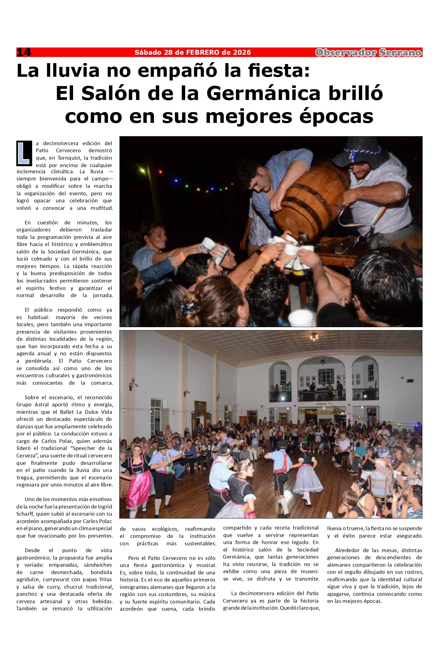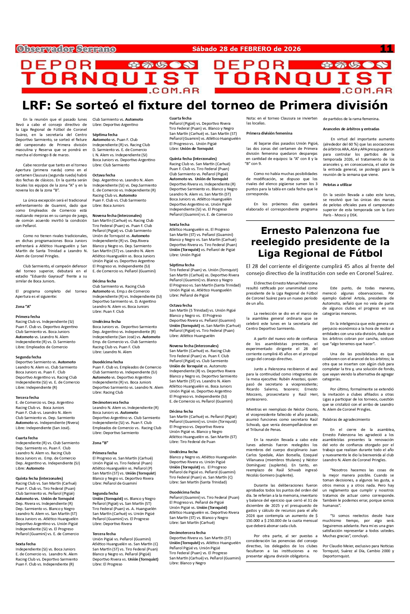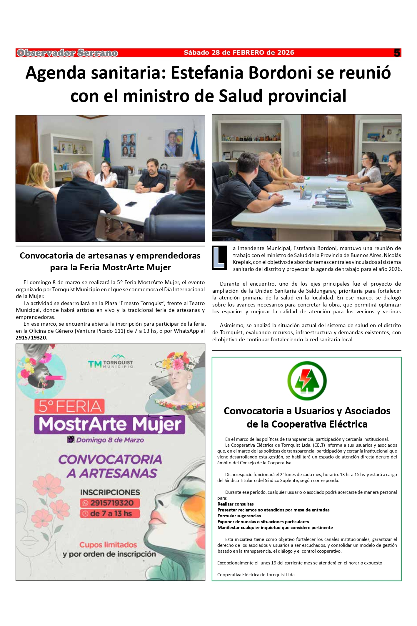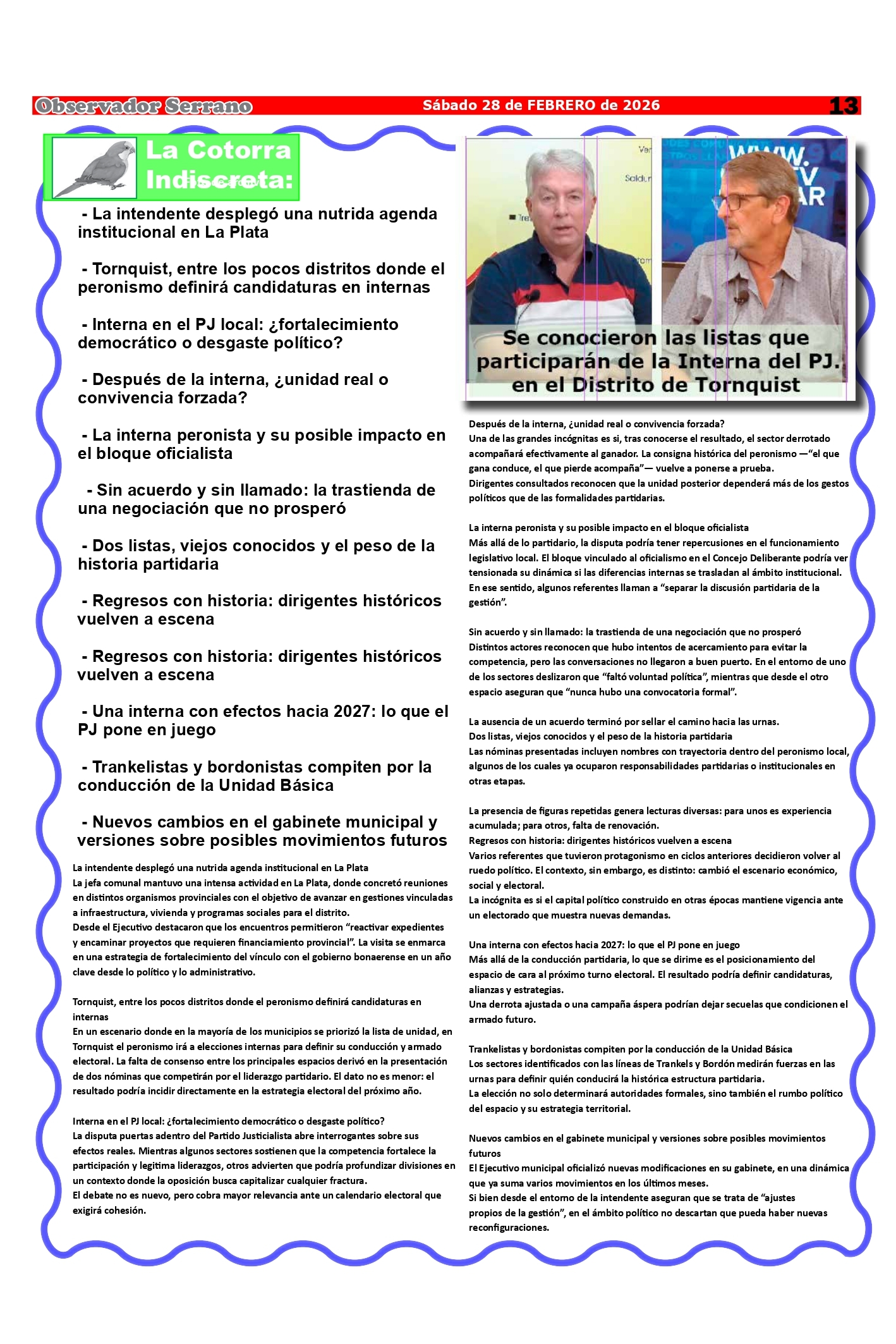 Observador Serrano 1813 HOY 11:02:53 | 191 LECTURAS | GENERALES Edición de este sábado 28 de febrero.