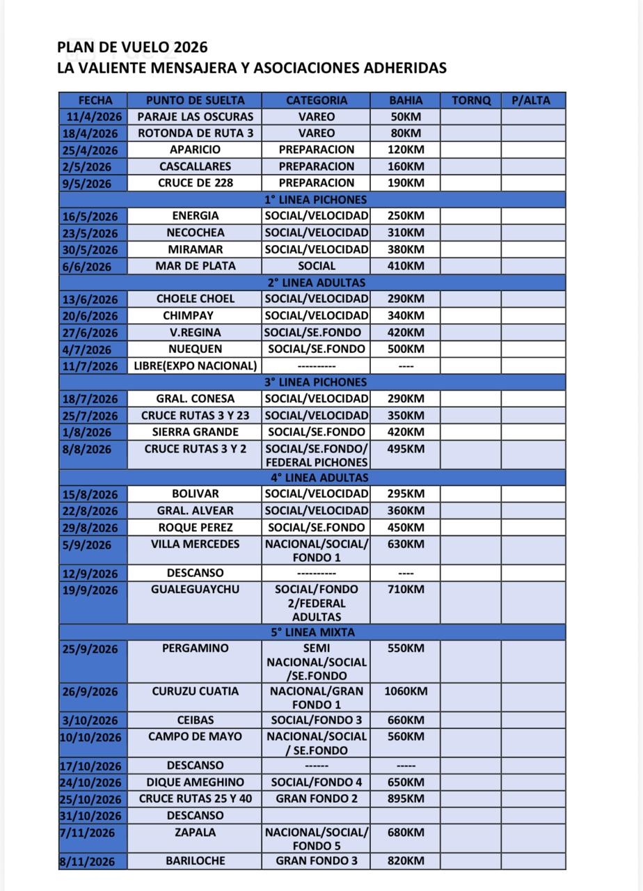 Durante el encuentro también se definieron aspectos vinculados al reglamento deportivo para la temporada, estableciéndose que las competencias se correrán al 50% de la velocidad, puntuándose a la paloma ganadora con la totalidad de los kilómetros recorridos, mientras que la última obtendrá la mitad del puntaje de la primera.