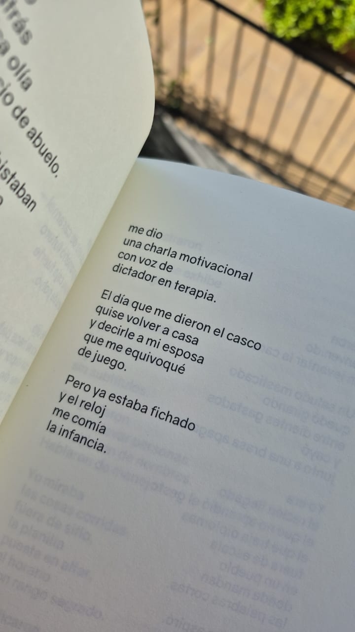 Los poemas construyen un registro directo y descarnado del universo industrial. Allí aparecen los cuerpos cansados, los rituales de la empresa, las palabras institucionales que intentan ordenar la realidad y, al mismo tiempo, la conciencia del trabajador que percibe las fisuras del sistema. Como señala uno de los pasajes del libro, el texto se presenta como “un registro breve de lo que cae cuando nadie mira”.
