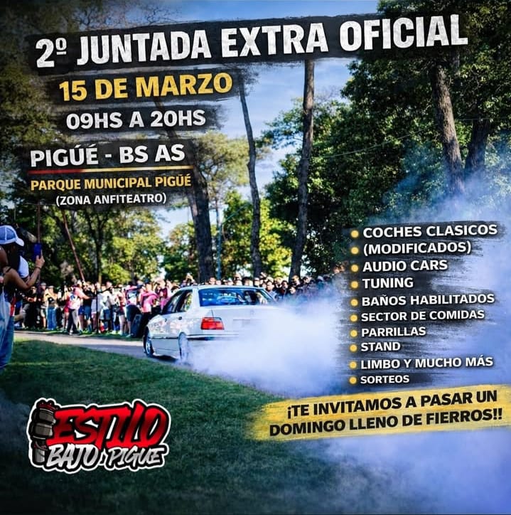 Descripción: Coches clásicos modificados, audio cars, tunning, patio de comidas, limbo con premios y sorteos. Entrada gratuita. Organiza Estilo Bajo Pigüé.