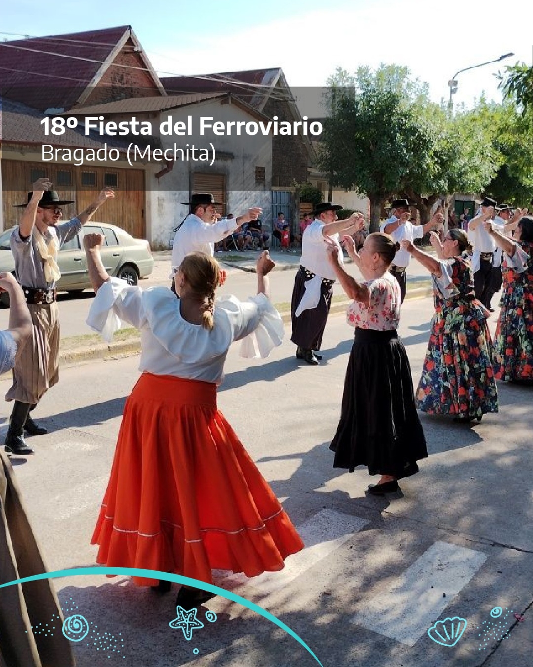 Descripción: Sábado, a las 13:00, apertura de la exposición, muestra y visitas guiadas en el Museo Ferroviario; a las 19:00, presentación de Mechita, obra inmersiva y multidisciplinaria a cargo de Constructores de Fuego. Domingo, apertura y acto de bienvenida con la presentación de Añoranza, Grupo Norteño, Daniela Luna, La Tronadora del Rock y cierre con Claudia Lomeña. Exposición en el Museo Móvil del Ferroclub de Remedios de Escalada, coleccionistas de Chivilcoy, locomotoras a escala por Juan Pablo Colombo y servicio de cantina. Entrada gratuita. Organizan el Centro Cultural Museo Ferroviario Mechita con el auspicio de los Municipios de Alberti y Bragado.