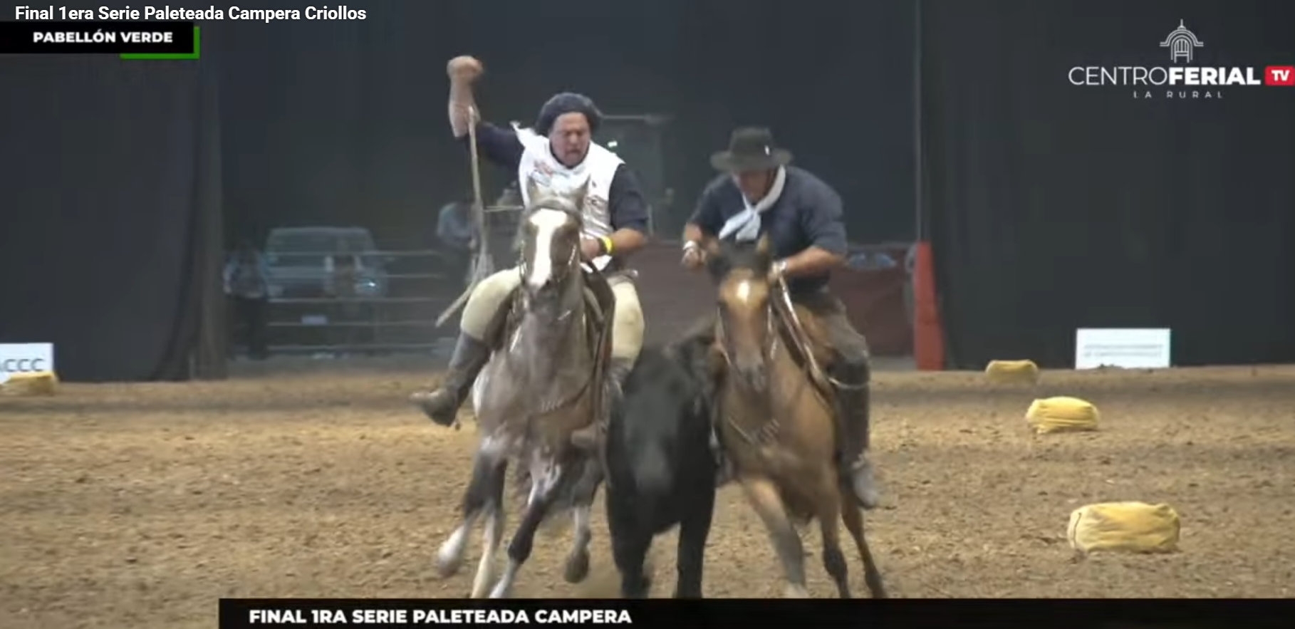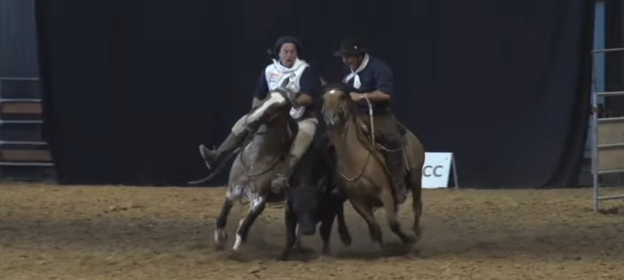 La disciplina de paleteadas reproduce una tarea típica del trabajo rural: el control de un vacuno en pista a lo largo de un recorrido determinado, evaluando la coordinación entre jinetes y caballos, la serenidad de los animales y la precisión en cada movimiento. Se trata de una de las pruebas más representativas de la funcionalidad del caballo criollo.