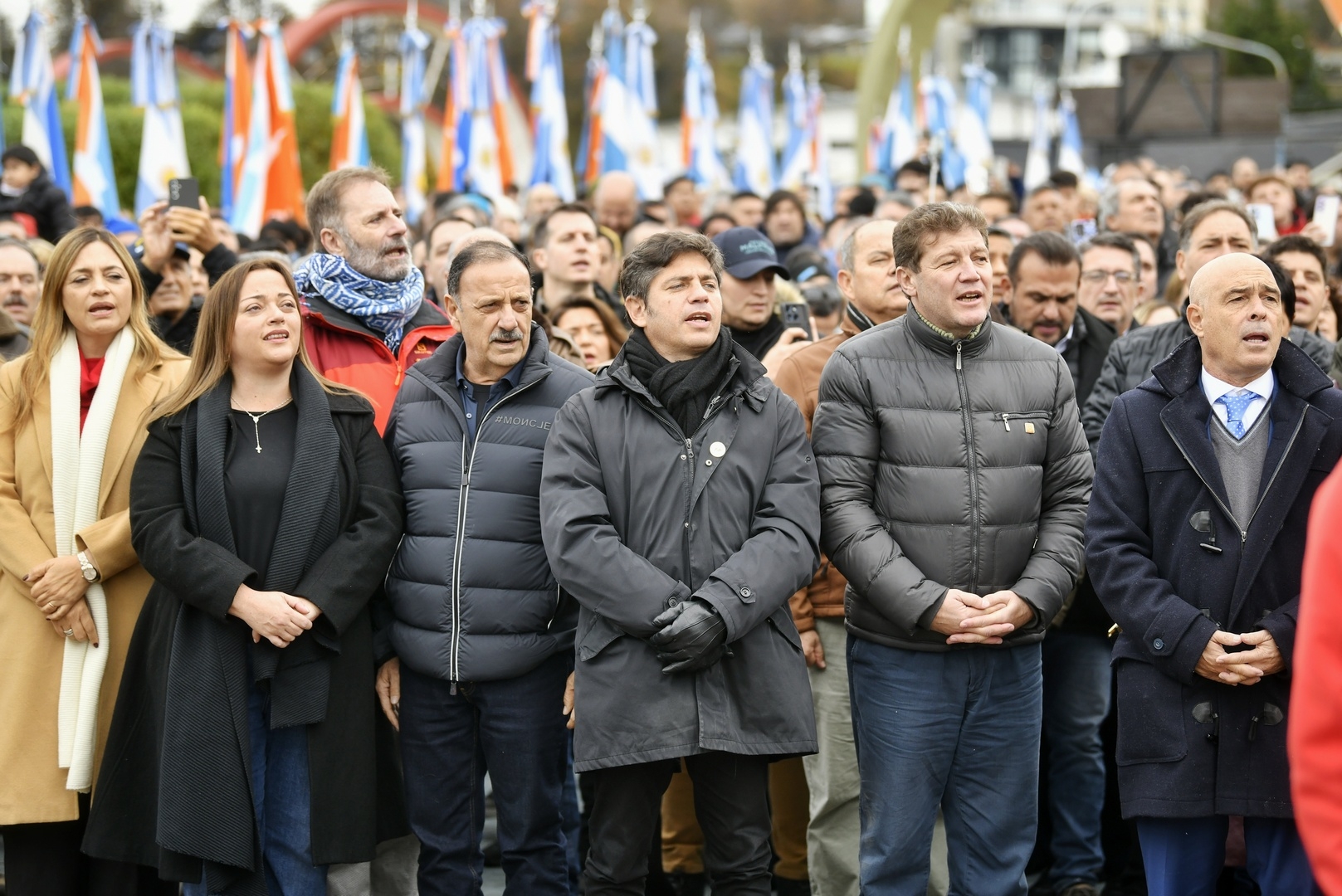 El gobernador de la provincia de Buenos Aires, Axel Kicillof, participó este jueves del acto por el Día de los veteranos y los caídos en Malvinas, realizado en la ciudad de Ushuaia, provincia de Tierra del Fuego, Antártida e Islas del Atlántico Sur. Fue junto al gobernador Gustavo Melella; su par de La Rioja, Ricardo Quintela; el intendente local, Walter Vuoto; el secretario de Malvinas, Antártida e Islas del Atlántico Sur y Asuntos Internacionales de Tierra del Fuego, Antártida e Islas del Atlántico Sur, Andrés Dachary; y el presidente del Centro de Excombatientes de Malvinas de Ushuaia, Juan Carlos Parodi.