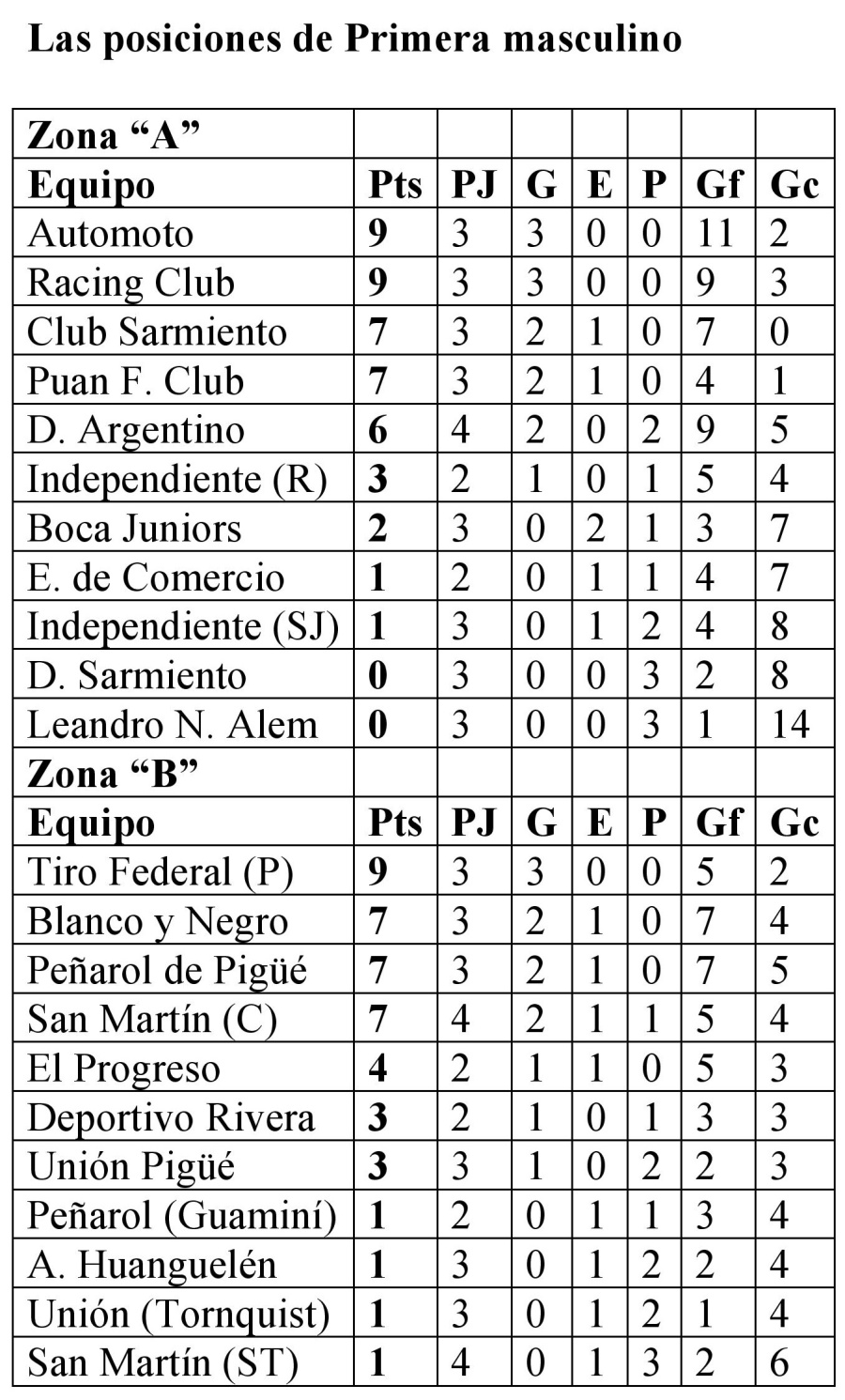 Zona “A”: Independiente de Rivera vs. Club Sarmiento; Deportivo Sarmiento vs. Puan F. Club; Leandro N. Alem de Coronel Pringles vs. Racing Club y Boca Juniors vs. Empleados de Comercio. Libre: Automoto